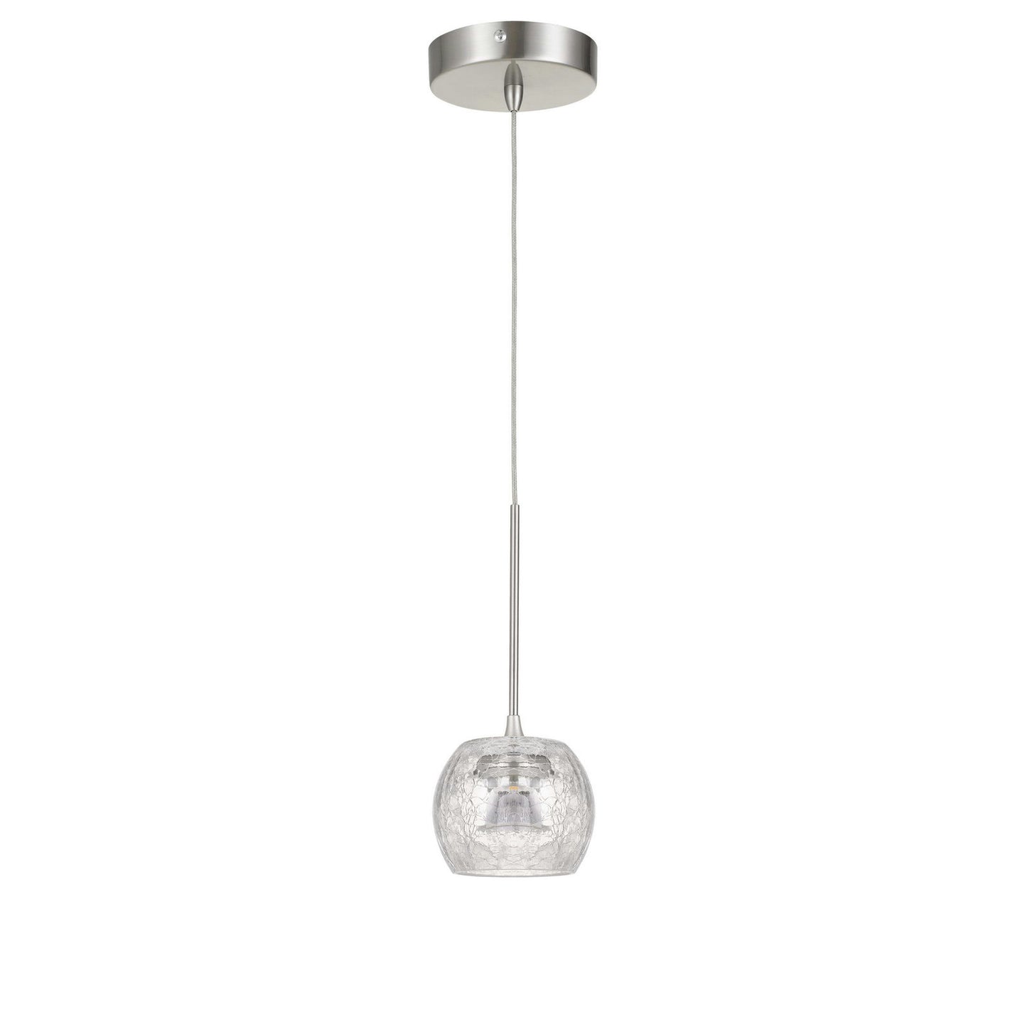 Ithaca 3000k, 8w, 700 lumen, 90 cri dimmable led glass mini pendant with clear crackle glass
