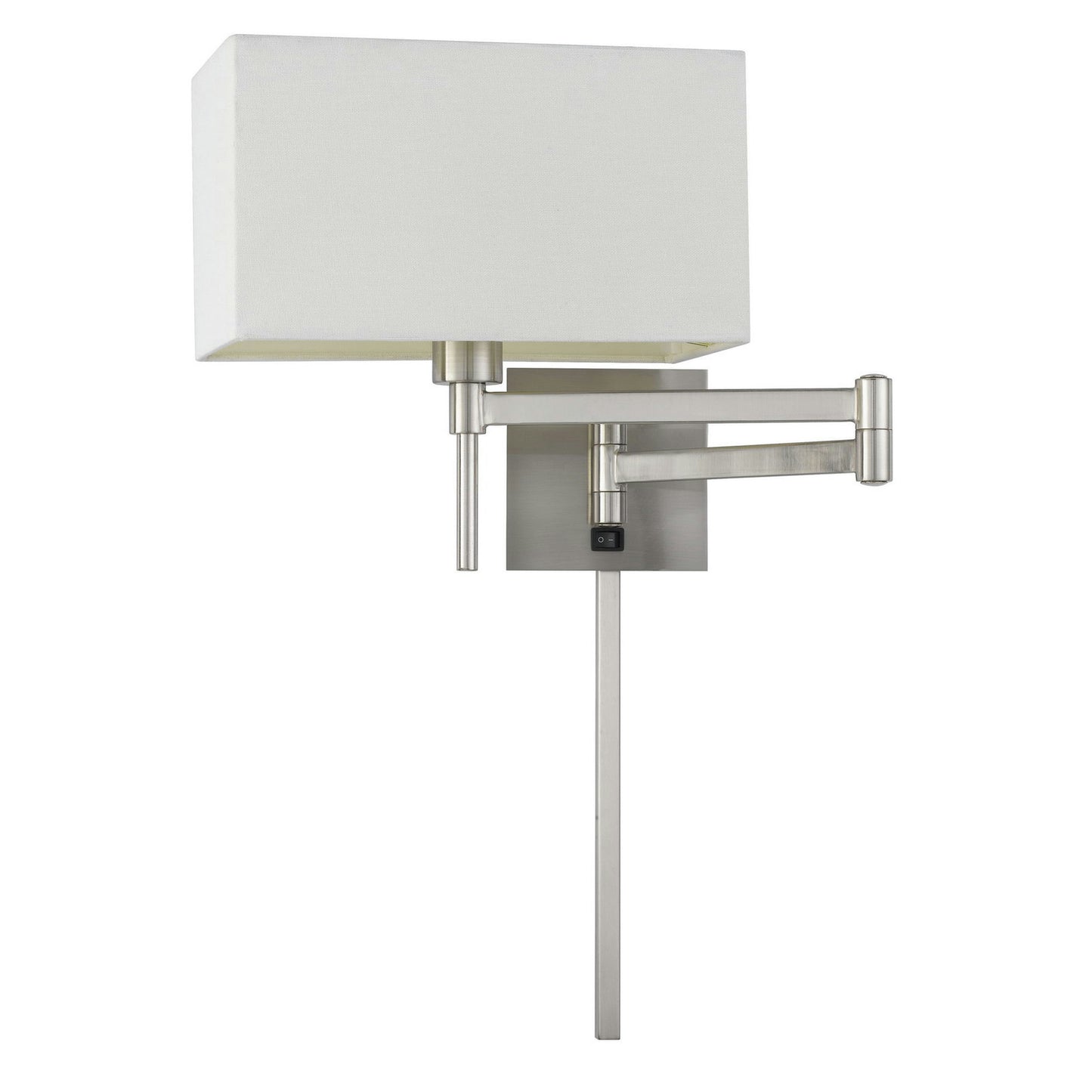 60w robson wall swing arm reading lamp with rectangular hardback fabric shade. 3 ft wire cover included.