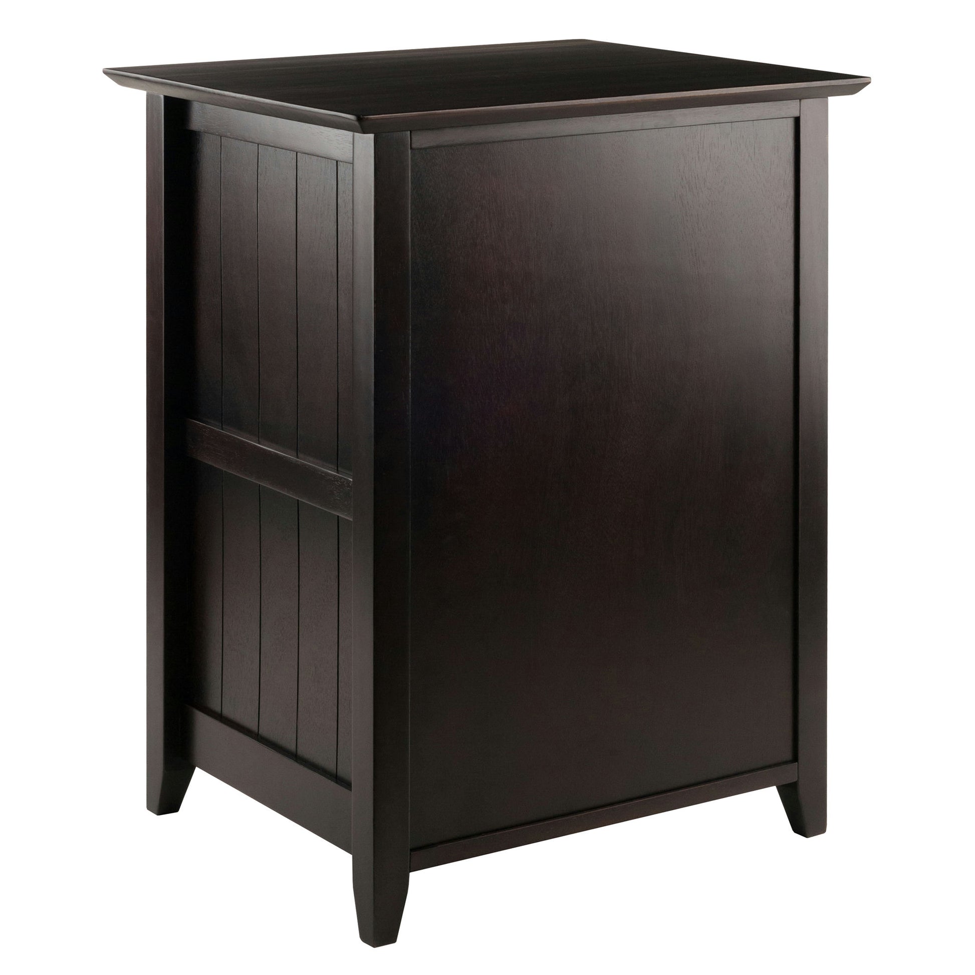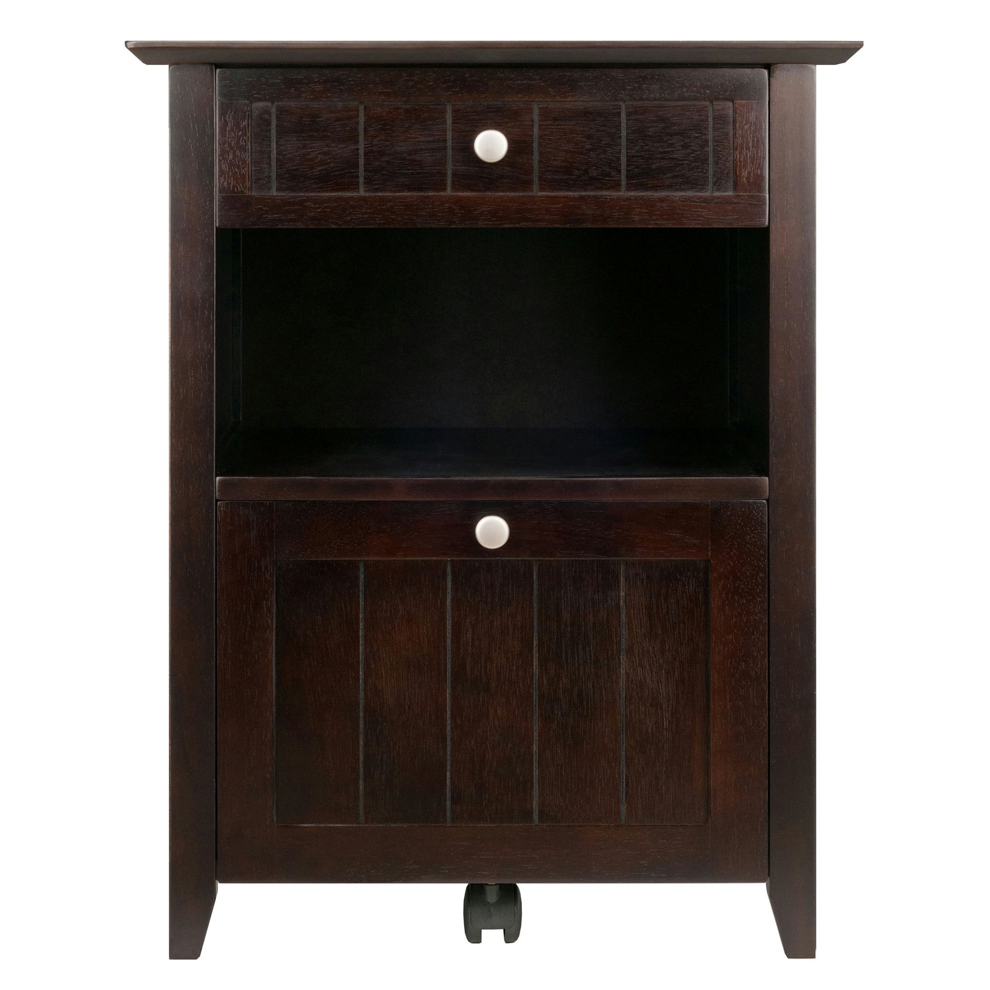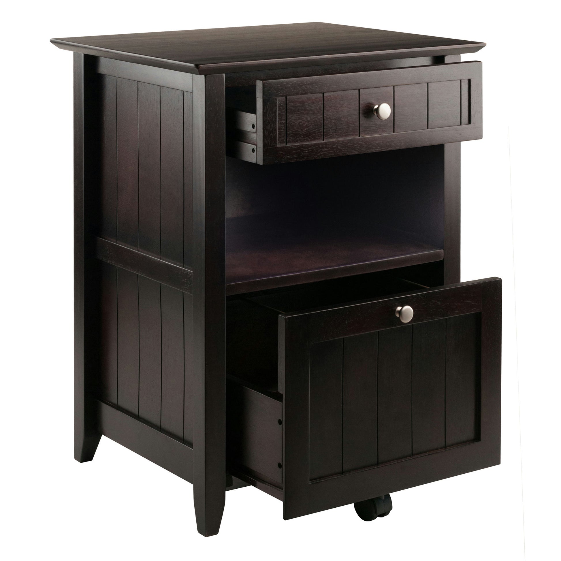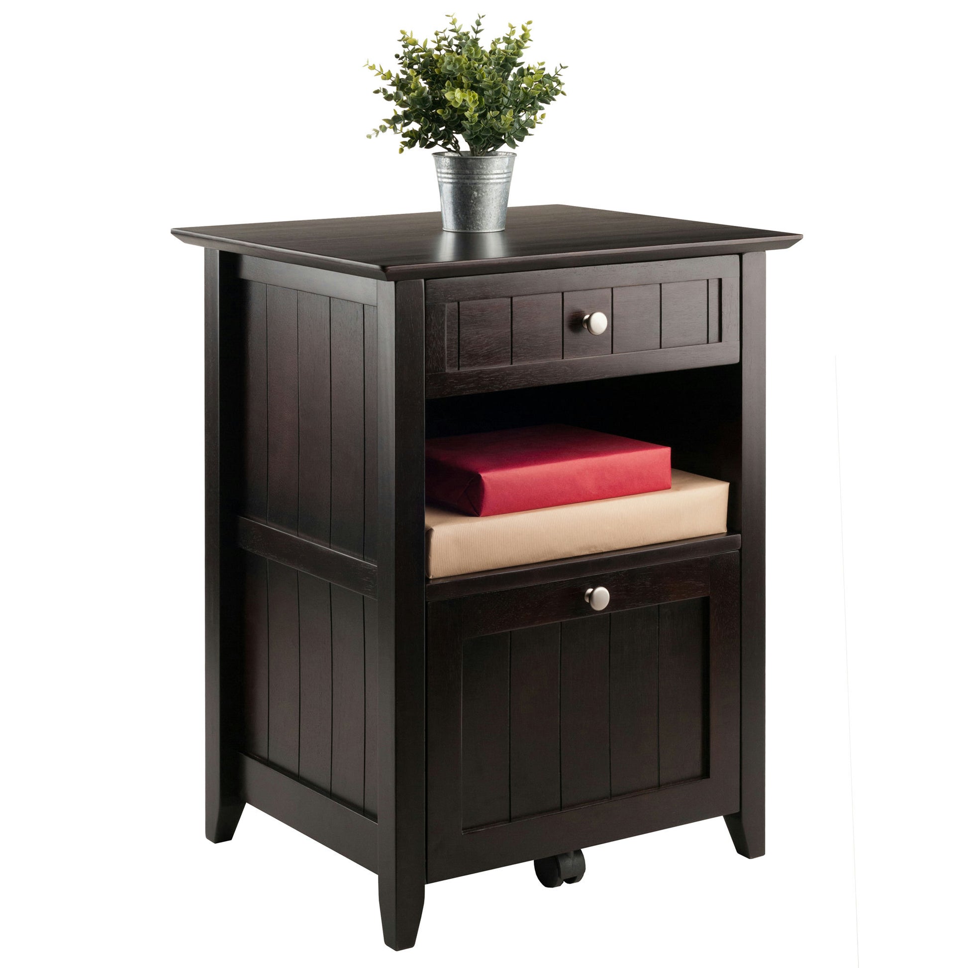 Wainscoting panels and beveled cabinet top add a warm, casual charm to The Burke File Cabinet. The bottom drawer holds legal and letter-sized files, and an open compartment and drawer serve as storage space for printer paper, office accessories and more. Made of Solid and Composite Wood in a Coffee finish.