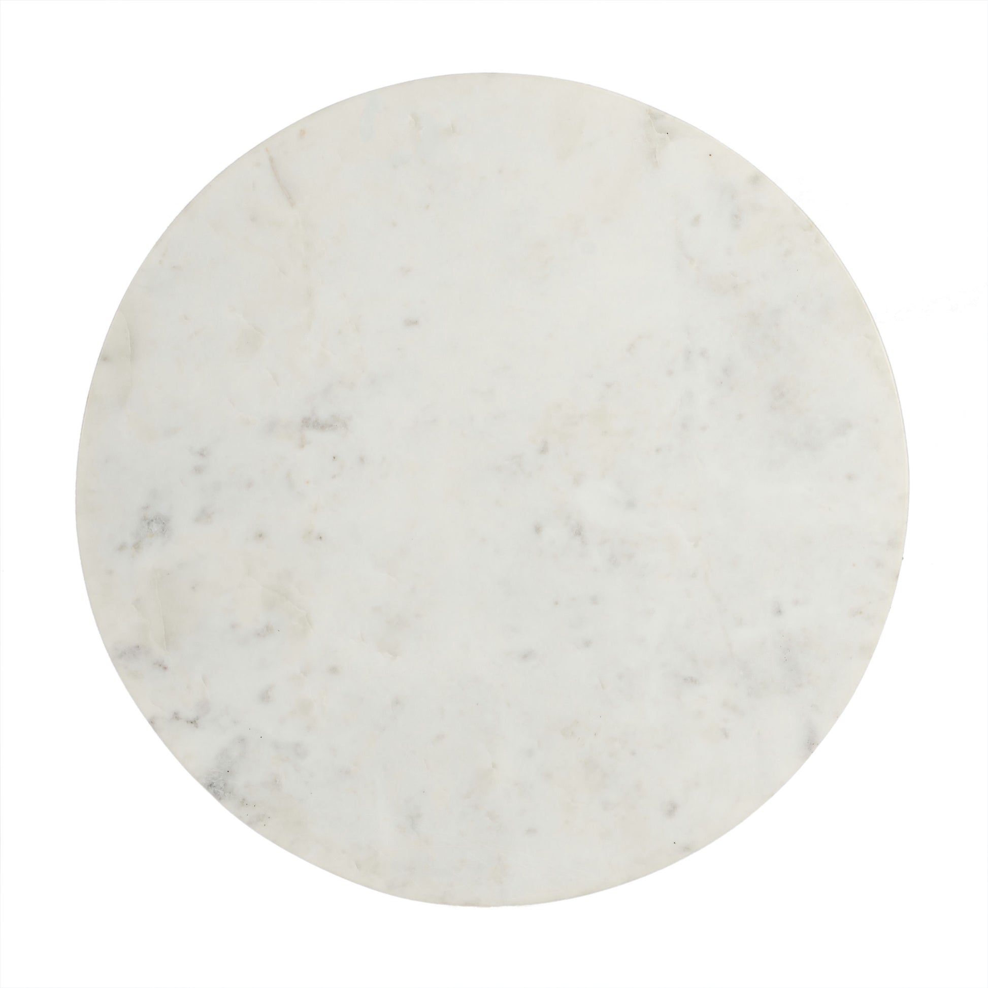 The white marble against the dark brown acacia Wood pedestal base give this side table a modern luxe look you'll love. The light ribbed detailing around the curvy solid pedestal base give this piece dimension that sets this apart from the rest. Dont be fooled by it's delicate appearance as this piece is solidly built. Use this in your living room or even as a bedside table.