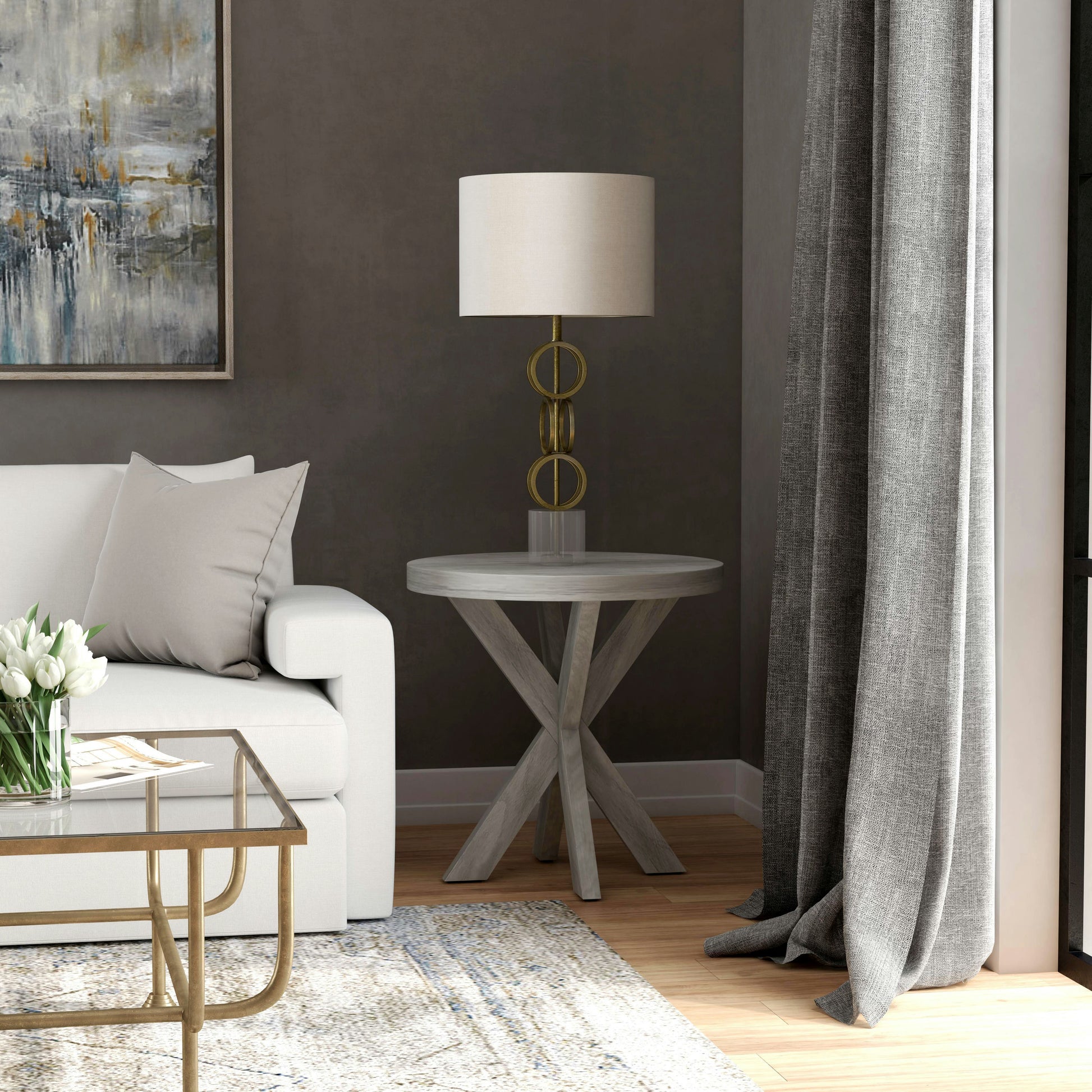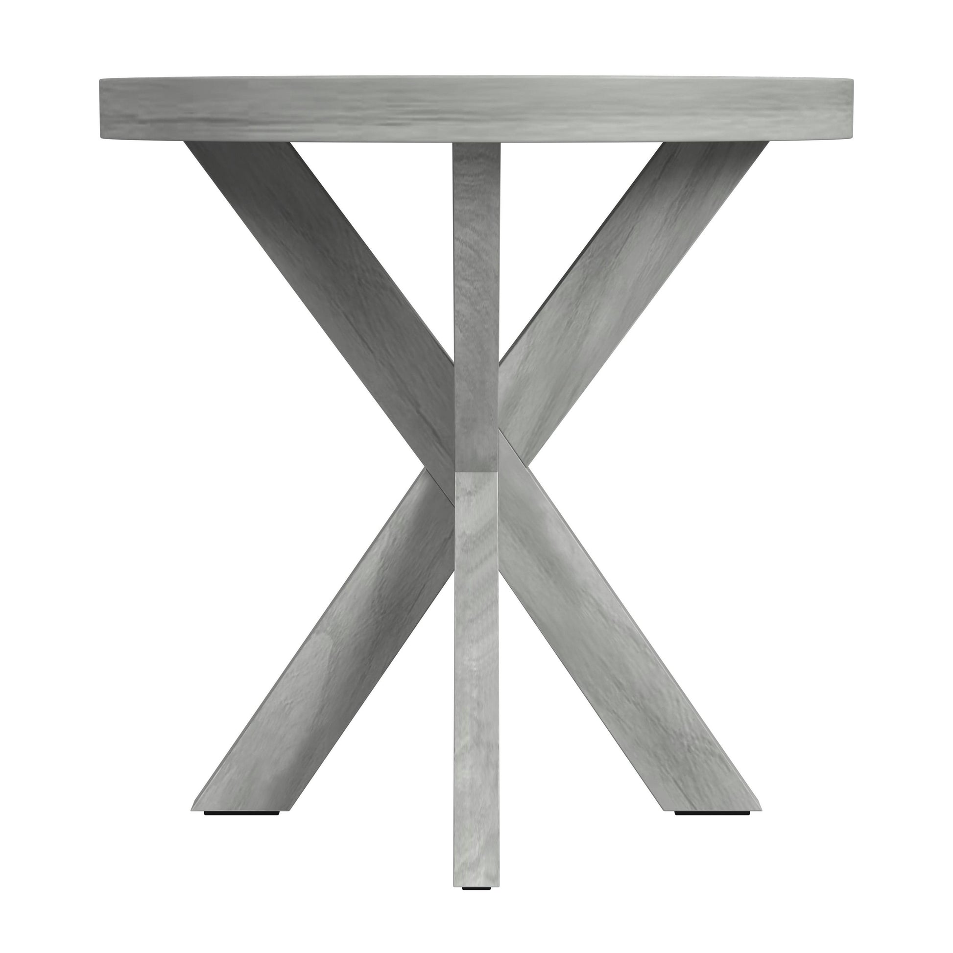 This contemporary accent table is uniquely appointed with a solid hardwood four-legged double "X" base. It is hand crafted from select hardwood solids and wood products, it features a veneers on the top and along the apron in a gorgeous powder gray finish.