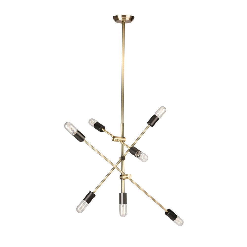 The remarkably understated and yet compellingly dynamic Byron pendant features 3 adjustable arms with 7 light fixtures, and a tall, narrow stem. The Byron is available in chrome and copper stainless steel and antique brass stainless steel with matte black detailing.