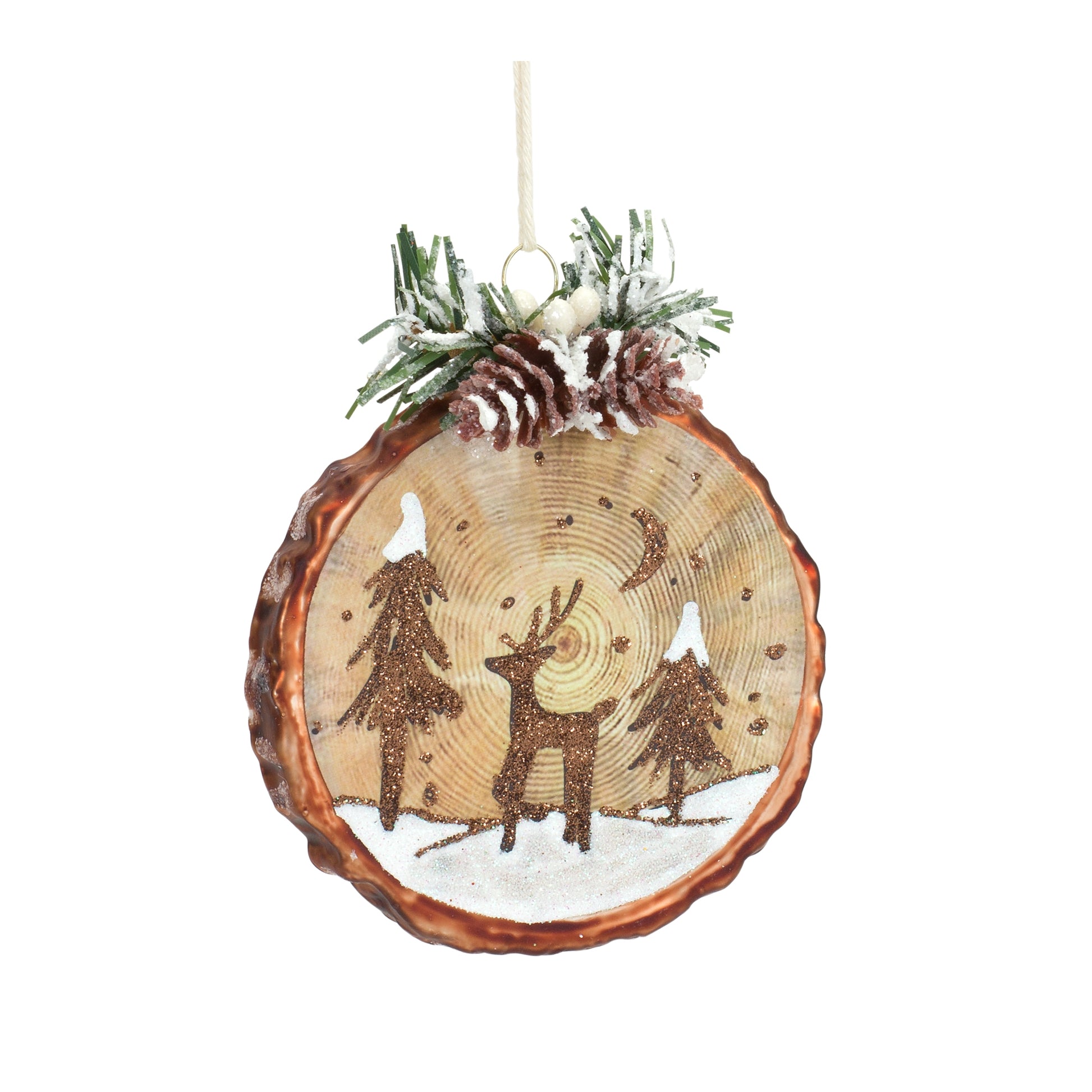 Adorn your Christmas Tree with this beautiful set of Tree Disc Woodland Ornaments. Featuring two assorted designs, the rustic tree disc design paired with the delicate woodland artwork and faux pine accents makes this set the perfect addition to your holiday tree decor. The pieces can be used as gifts for friends to cherish, or you can display the set on your own Christmas tree and enjoy them for years to come.
