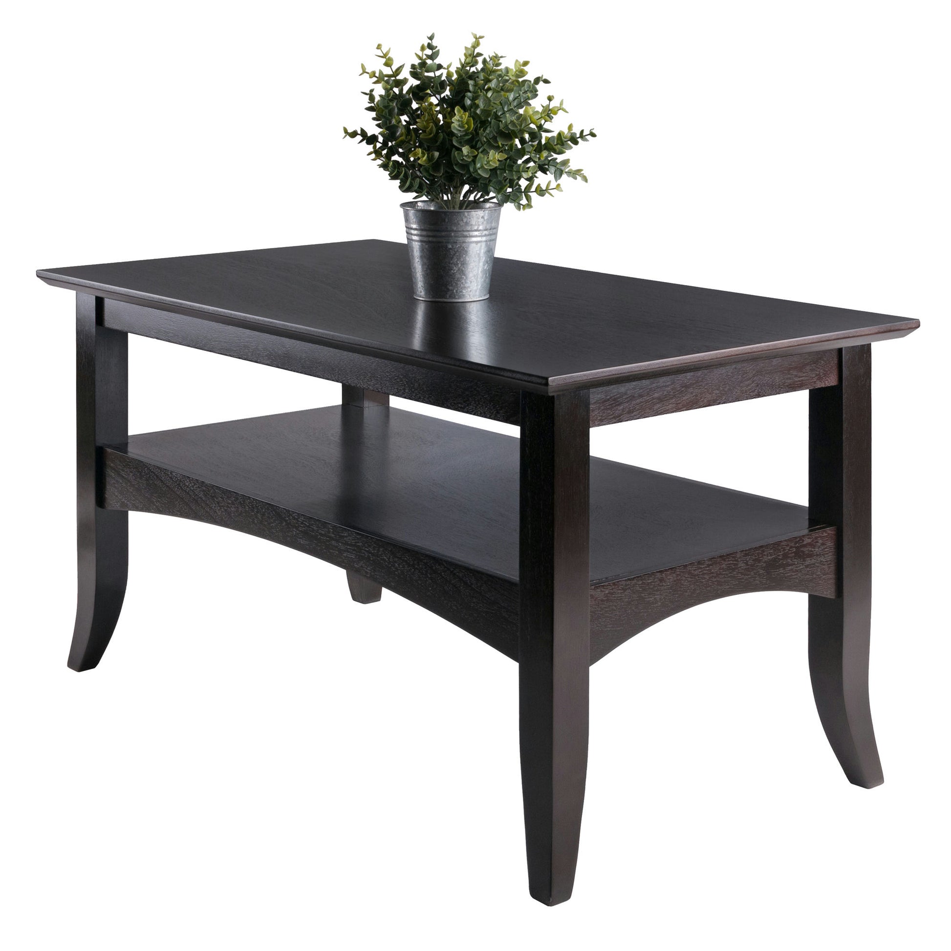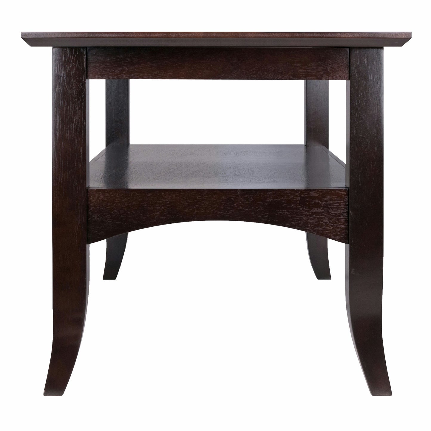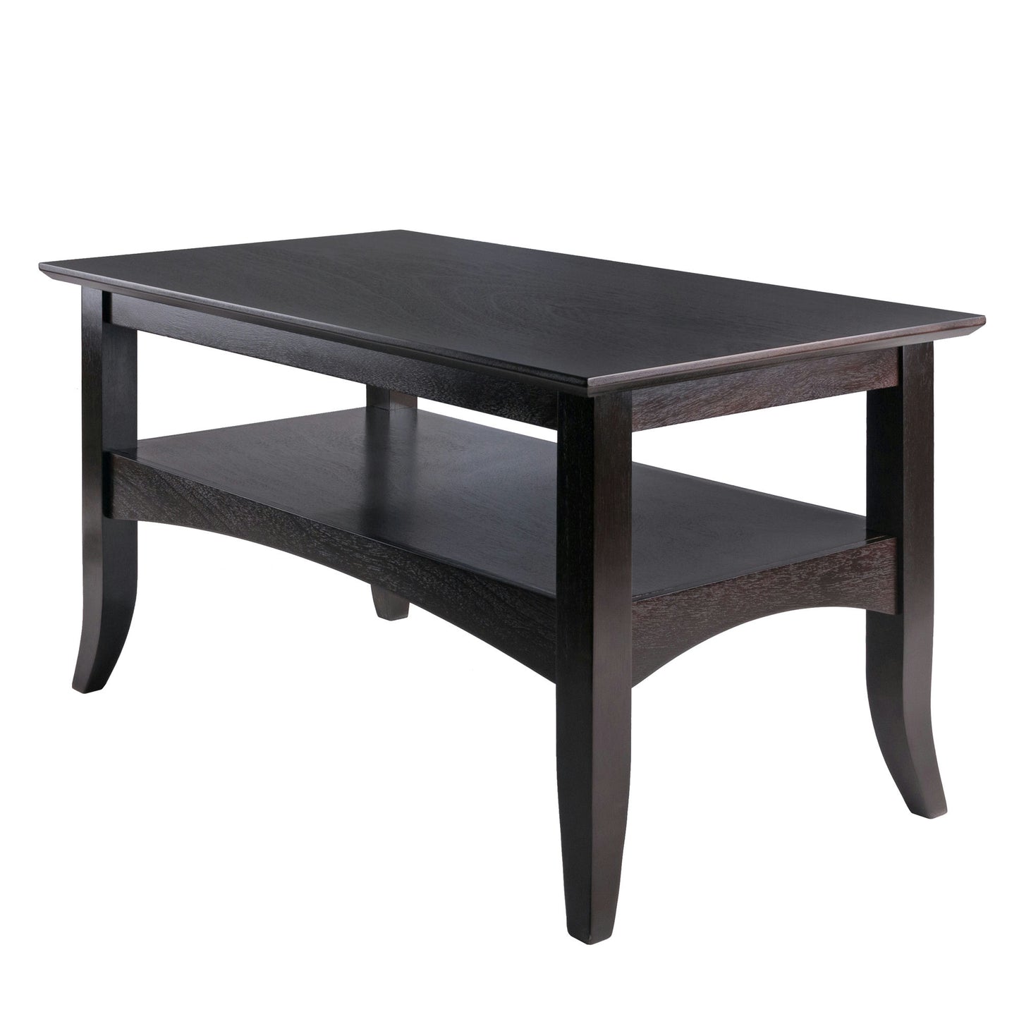 Make the Camden Coffee Table the centerpiece of your living room or family room. It offers time-tested traditional styling with the elegant touch of slightly flared legs and curved aprons that border the lower shelf. Constructed of Solid Wood in a rich Coffee finish.