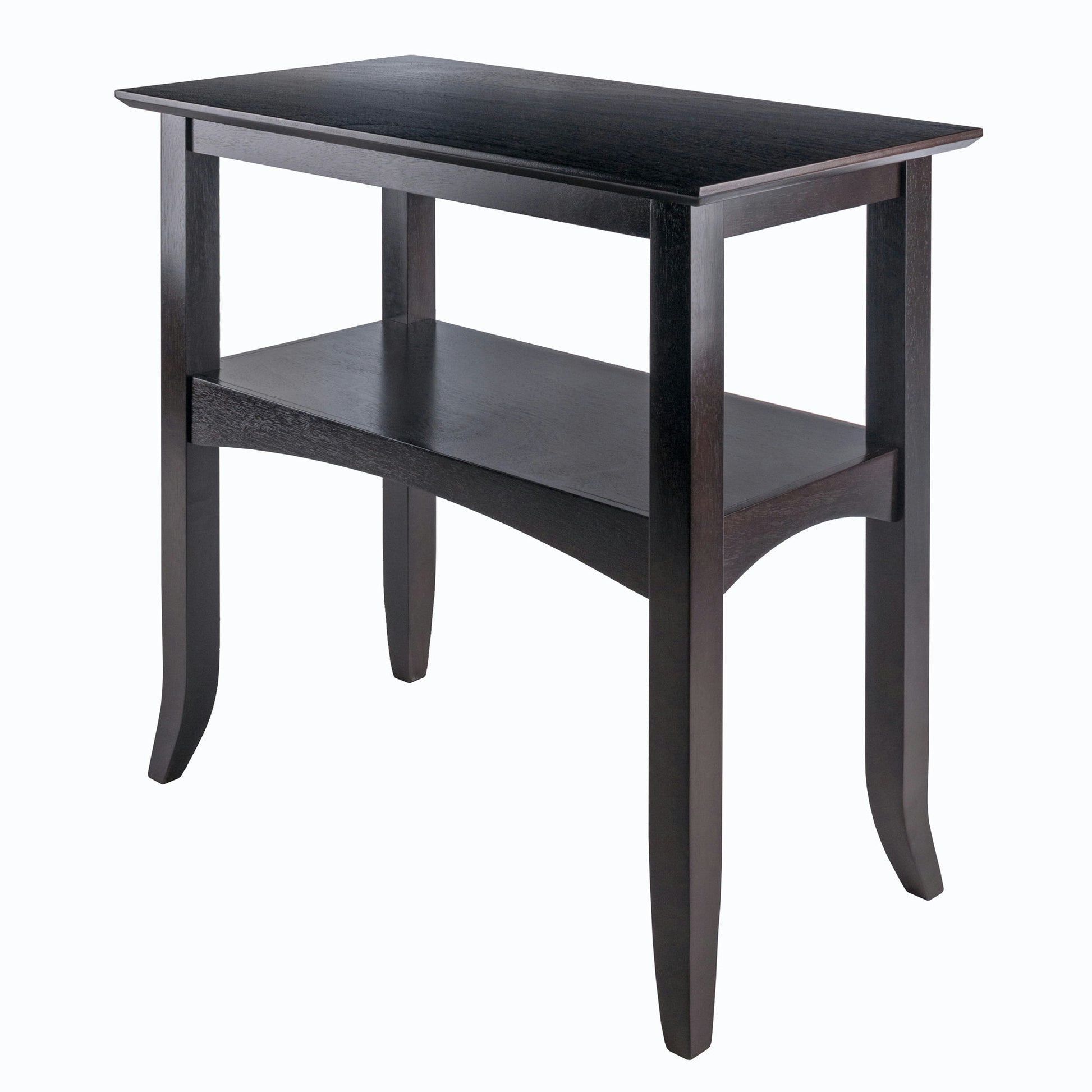 Arched aprons that define the lower shelf and slightly flared legs add unique touches to this traditionally-styled console table. At 30" wide, the console is perfectly sized for apartment living or smaller rooms. Its Solid Wood construction and rich Coffee finish will be an elegant fit for your entryway, living room or dining room.