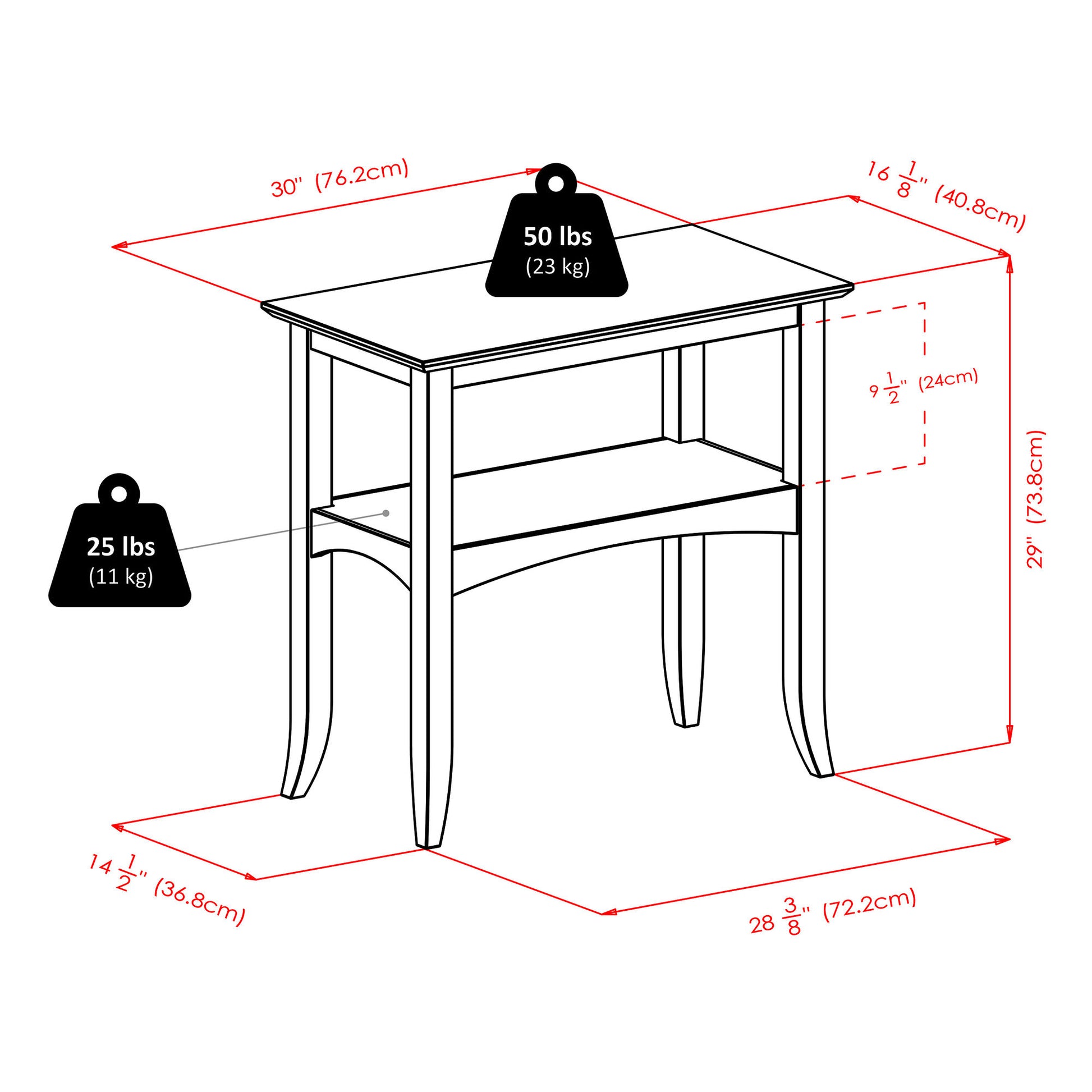 | 24.8 LBS | 16.06 IN | 30 IN | 29.06 IN |