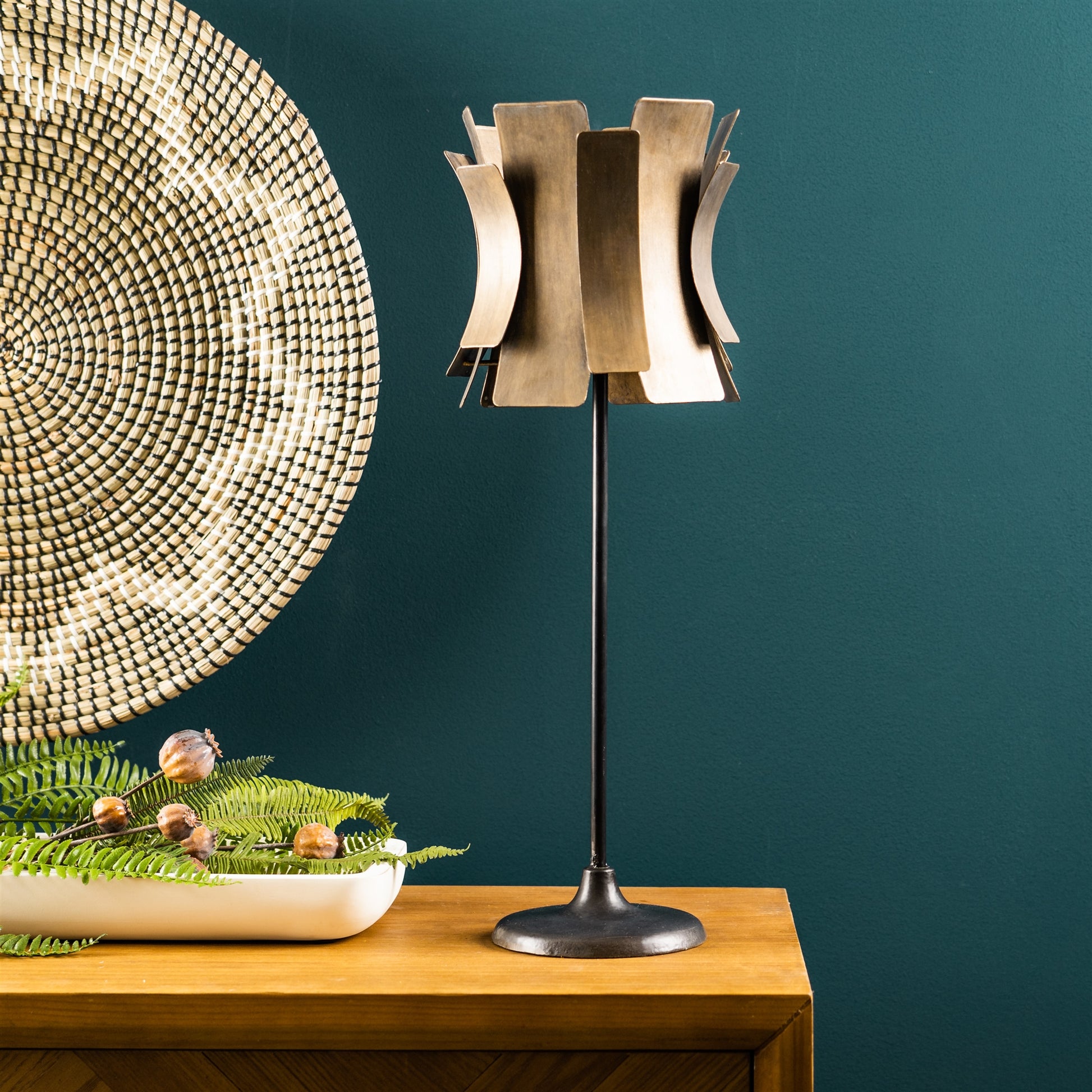 Add a chic-antique touch to your home with this beautiful set of Glass Candle Holders. The chic golden finish paired with the abstract style frame is the perfect combintion to create a stylish display. The quality iron metal composition and delicate glass insert are sure to last for seasons to come. Illuminate the piece with a real wax or LED candle.