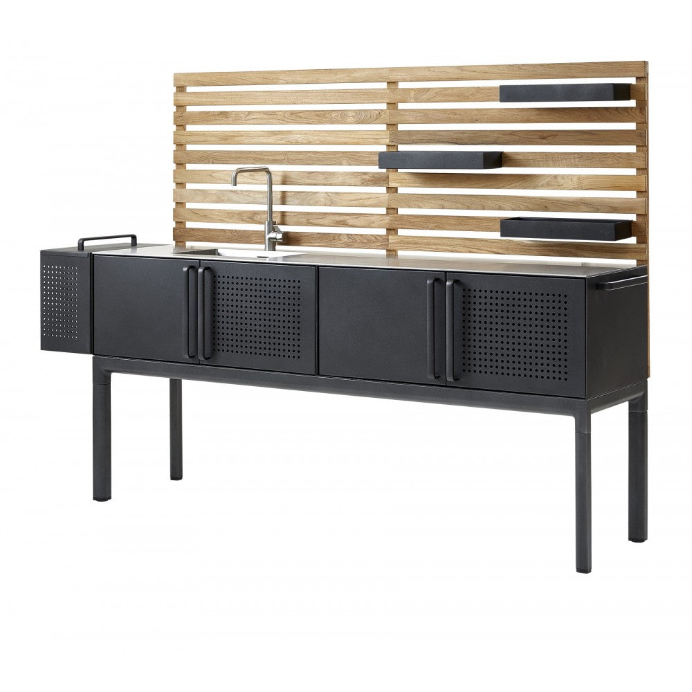 Cane-line is a Danish design company with 30 years of experience in designing and manufacturing functional and comfortable furniture. Life made comfortable is the very essence of Cane-line. Outdoor collection is designed with the purpose to have a comfortable outdoor living lifestyle. The all-weather furniture offer maximum comfort and minimal maintenance. Includes: 1 x Drop kitchen module incl. 3 shelves, (WITHOUT TOP).