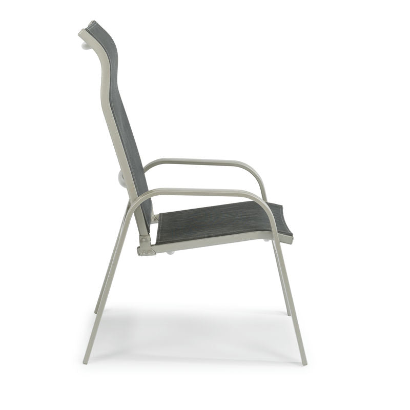The Captiva arm chair features a lightweight aluminum frame that will make your outdoor living maintenance-free. The contoured sling seat fabric with high back allows you to relax for hours.