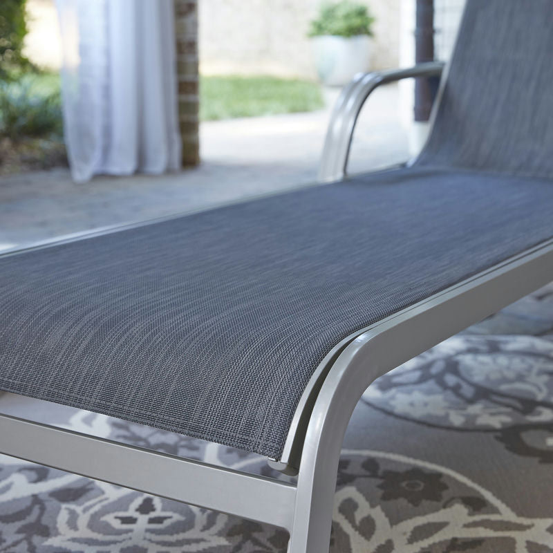 The Captiva chaise lounge features a lightweight aluminum frame that will make your outdoor living maintenance-free. The contoured sling seat fabric with high back allows you to relax for hours. The adjustable back has five preset reclining positions, and can also lay flat.