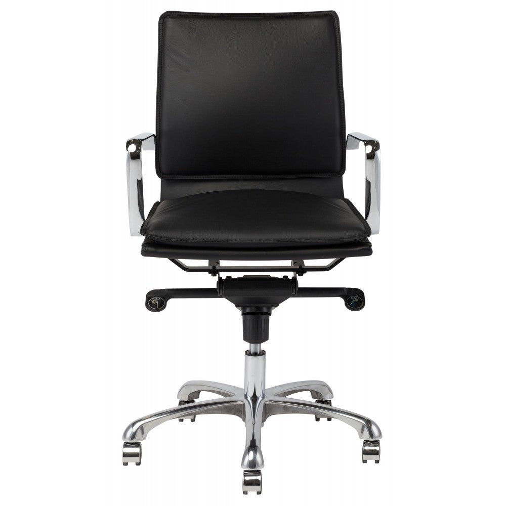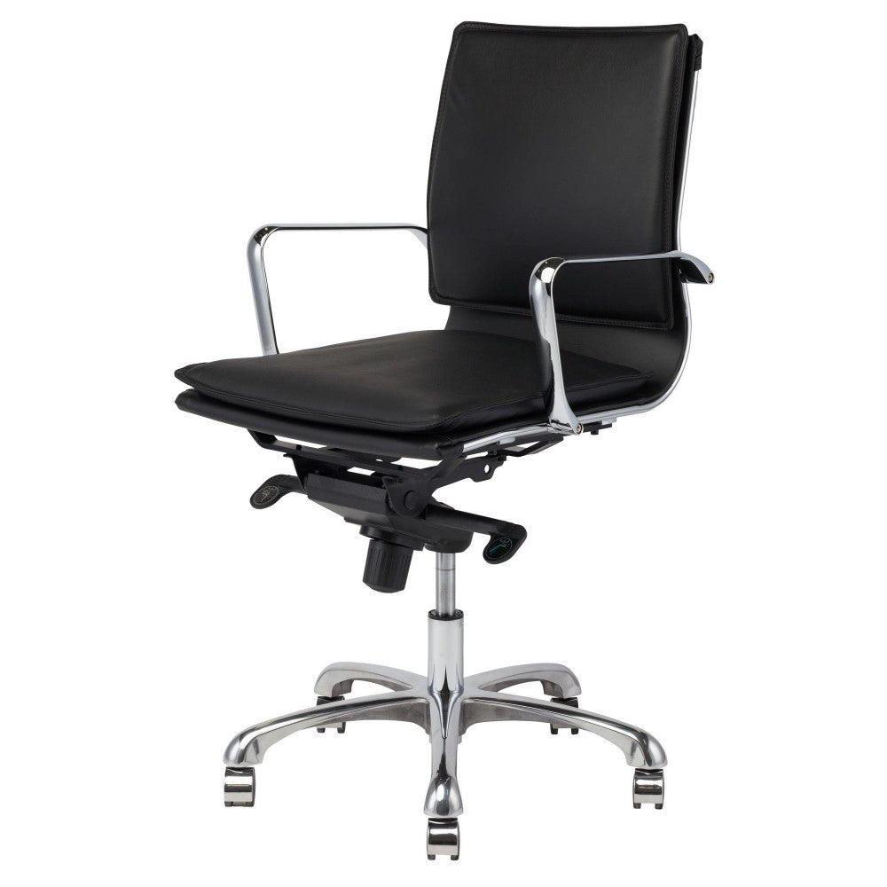 Comfort, versatility and a sleek ergonomic design imbues the Carlo office chair with its own sense of distinction and style. A contemporary aesthetic highlighting refined design, the Carlo has a double padded, fully adjustable, seat and backrest in rich tailored leather or naugahyde with chrome accented arms and 5 star castor base for 360 degree swivel.