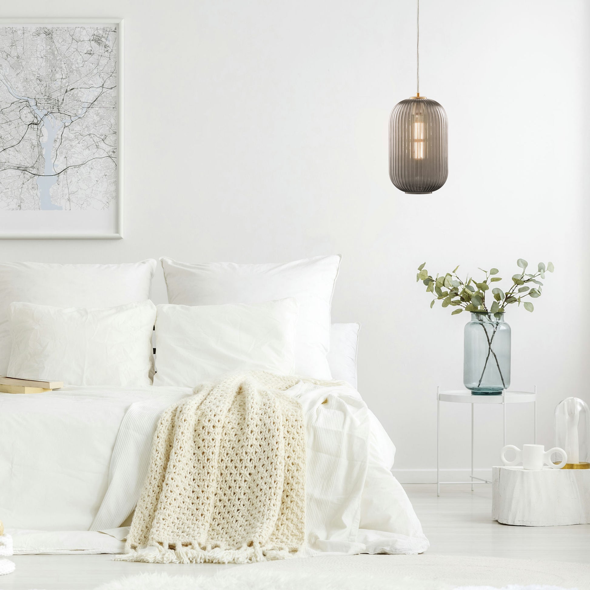 Carro Home Circulus Smoky Gray Ribbed Glass Pendant Light