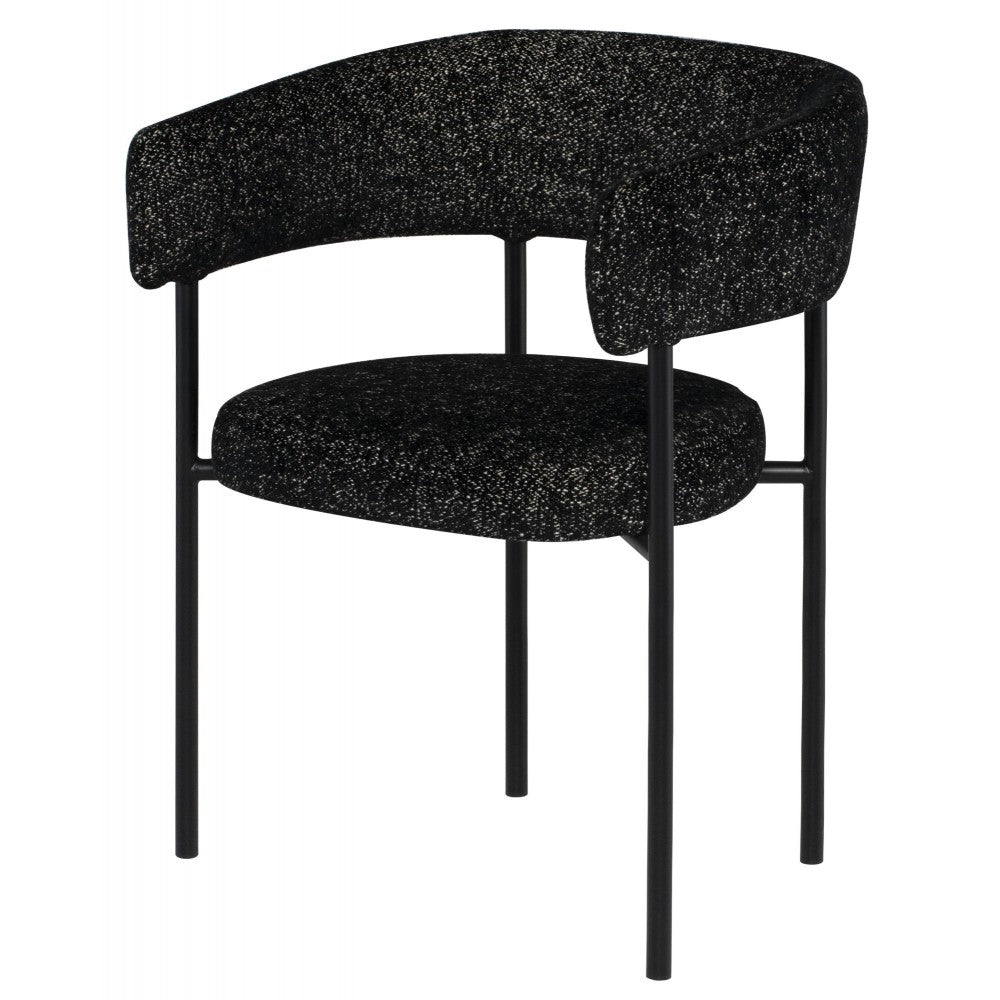 The stylishly rounded backrest of the Cassia Dining Chair brings a soft edge to your dining room. Sitting on modern thin matte black legs, its extra-padded seat and softly curved back means these chairs are perfect for enjoying long, leisurely dinners.