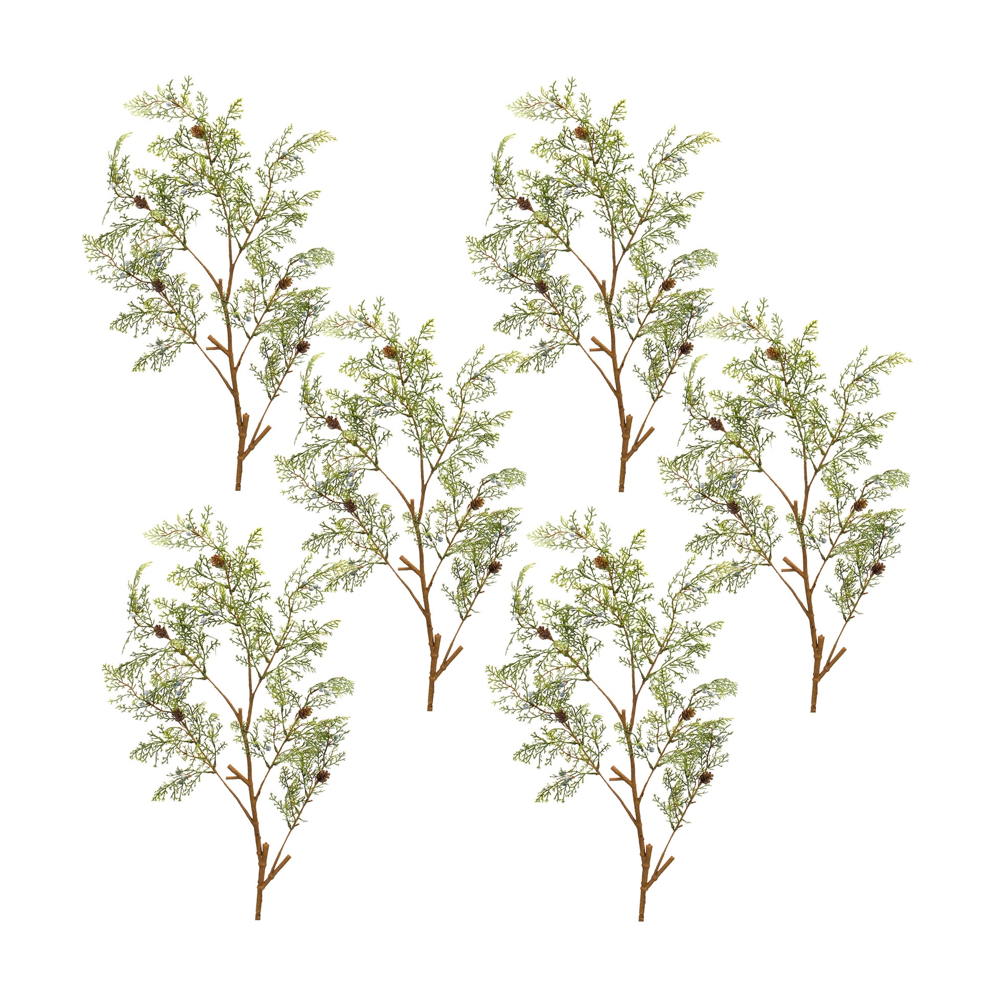 Ring in the holiday season with this beautiful set of Cedar Sprays. Featuring six pieces, this set would be a great addition to your Christmas centerpiece or table arrangement. The varigated cedar foliage paired with the pinecone accents and branch design is the perfect combination to create a stunning Christmas display. Add this set to a table vase to make a statement.