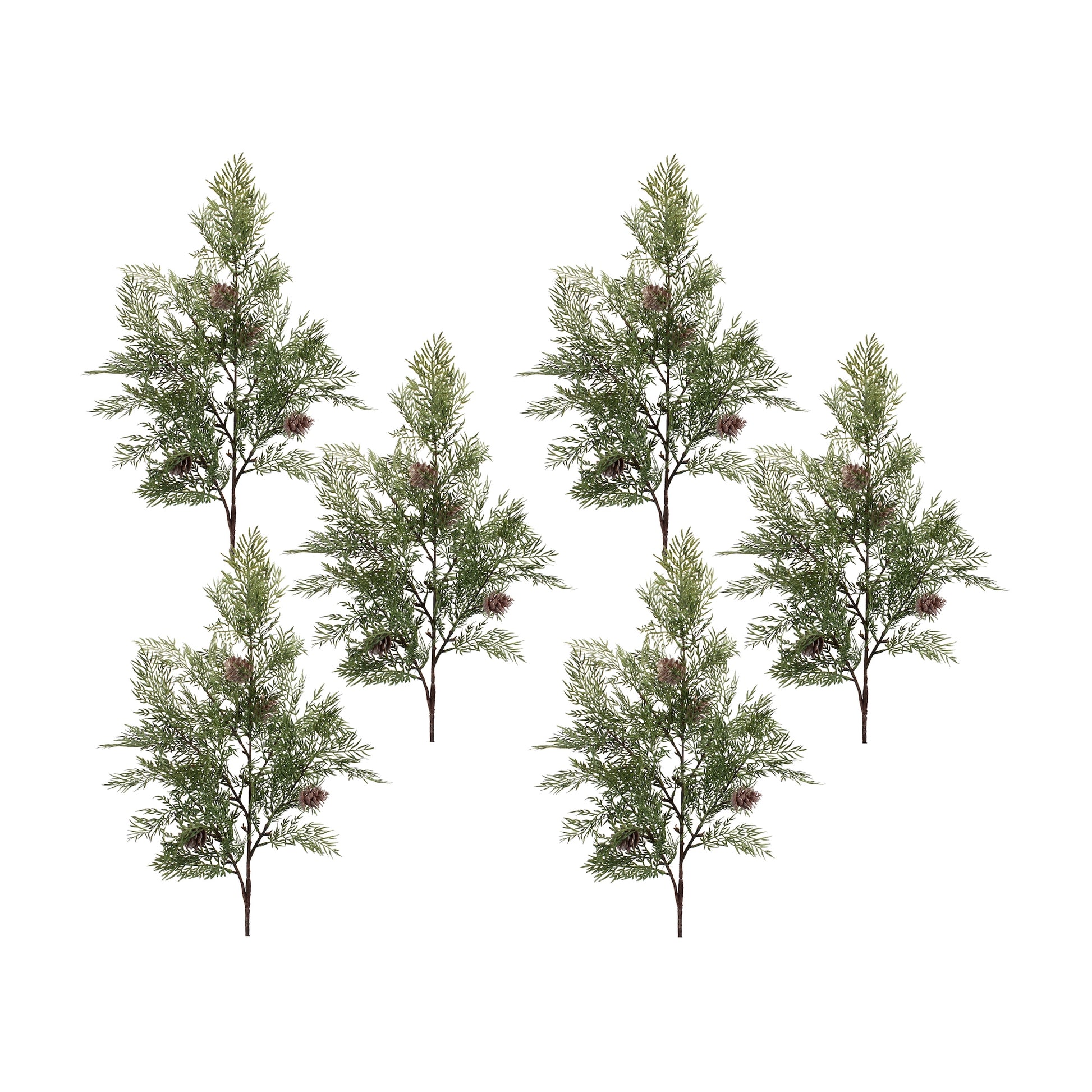 Ring in the holiday season with this beautiful set of Cedar Sprays. Featuring six pieces, this set would be a great addition to your Christmas centerpiece or table arrangement. The varigated cedar foliage paired with the pinecone accents and branch design is the perfect combination to create a stunning Christmas display. Add this set to a table vase to make a statement.