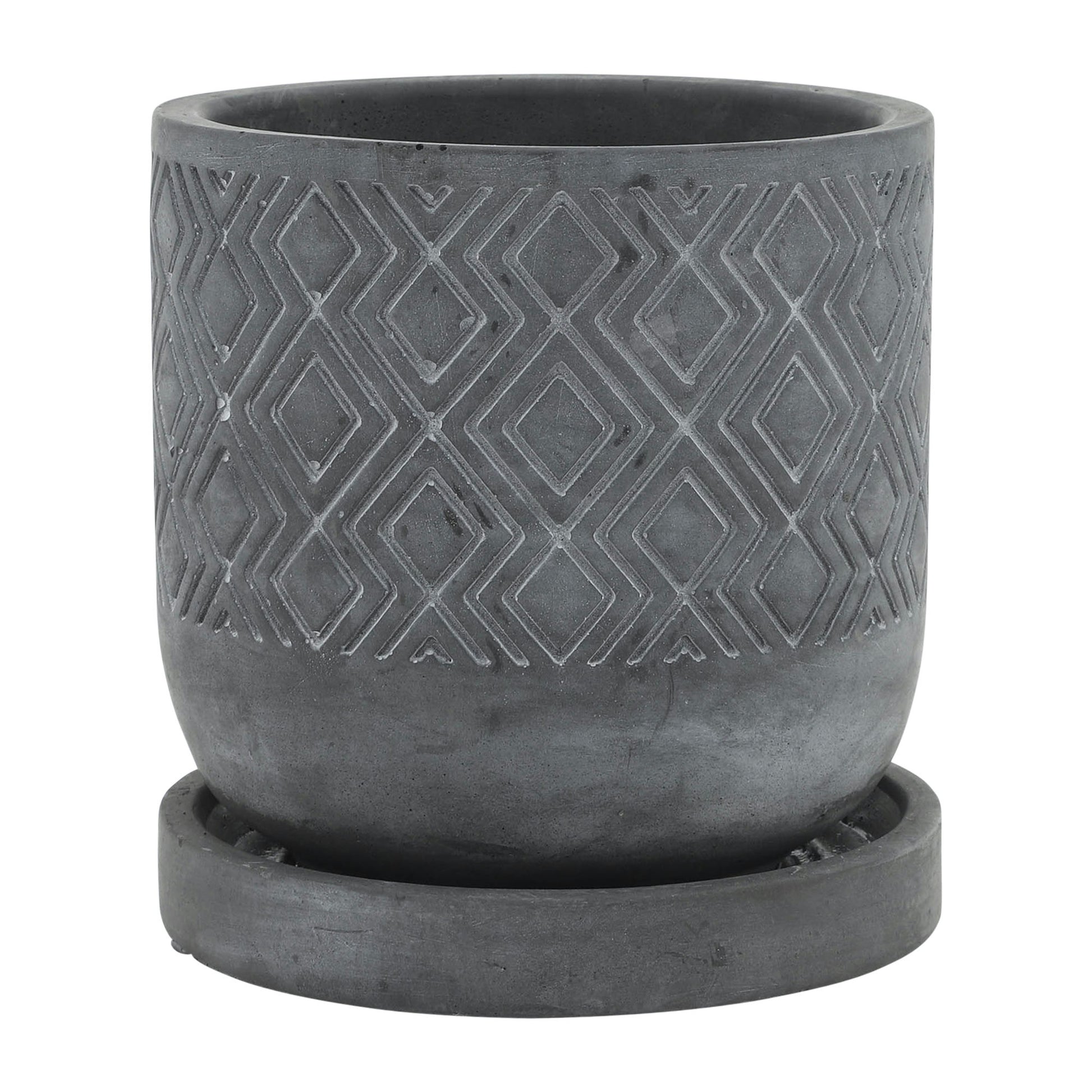 Cem, 6" Diamond Planter W/ Saucer, Gray