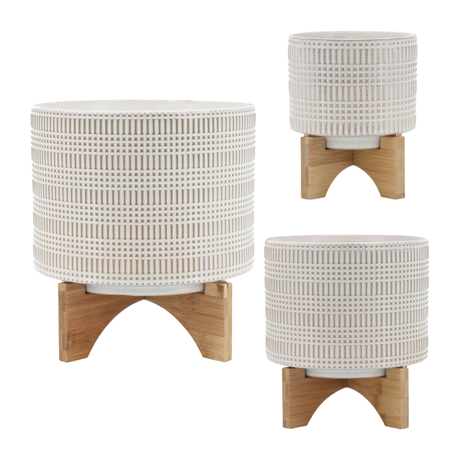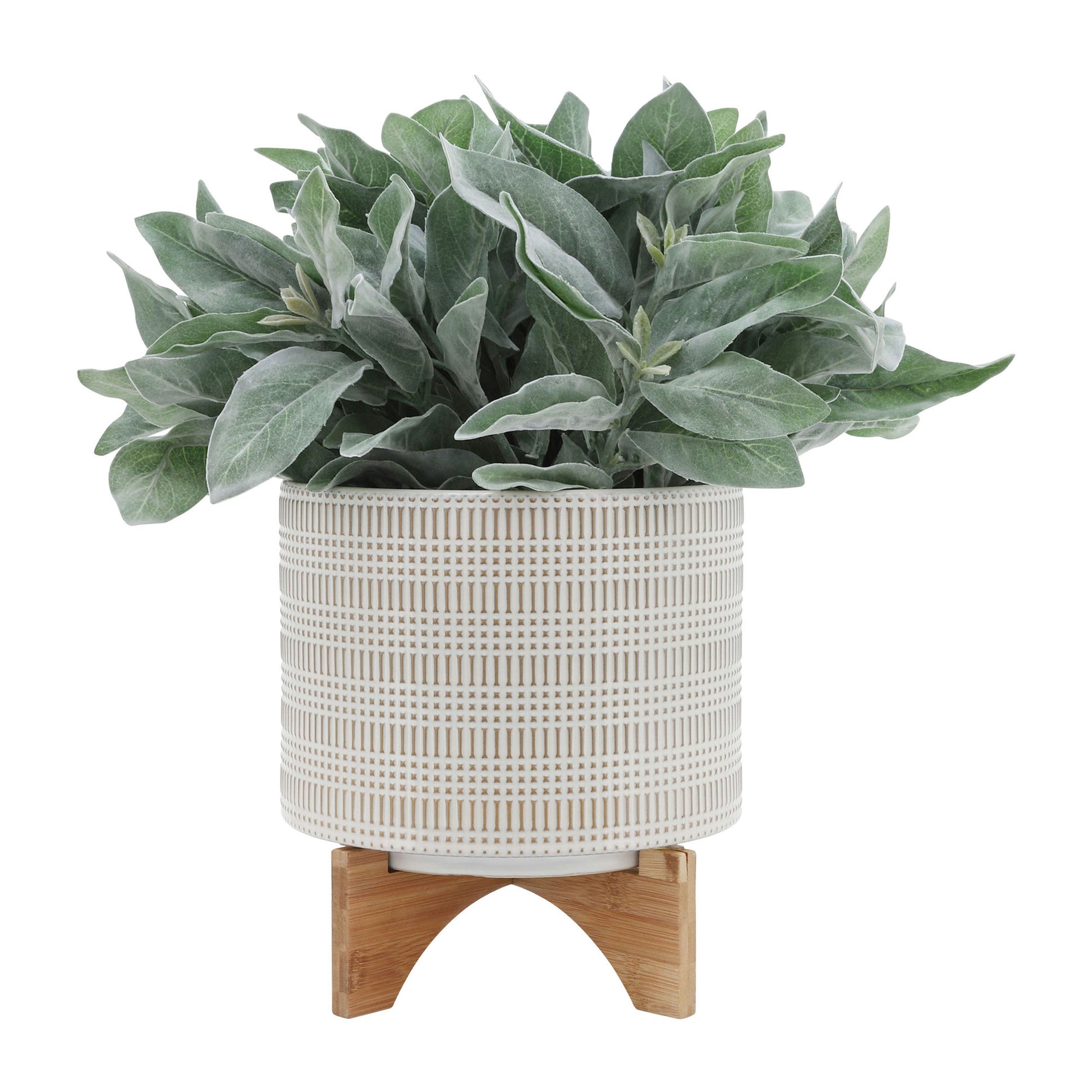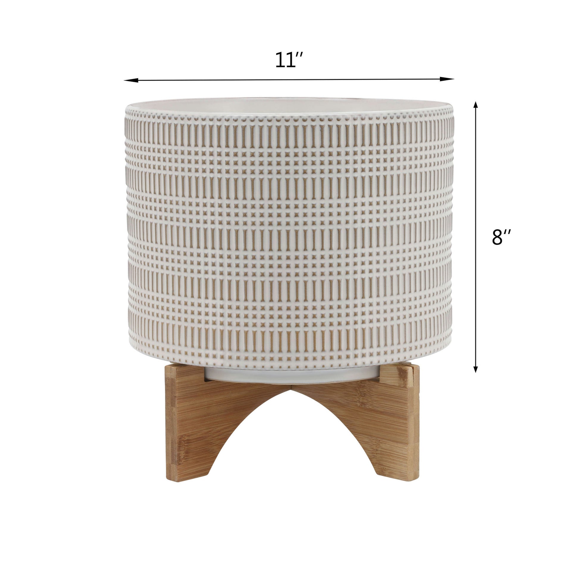 Cer, 10" Tribal Planter W/ Stand, Ivory