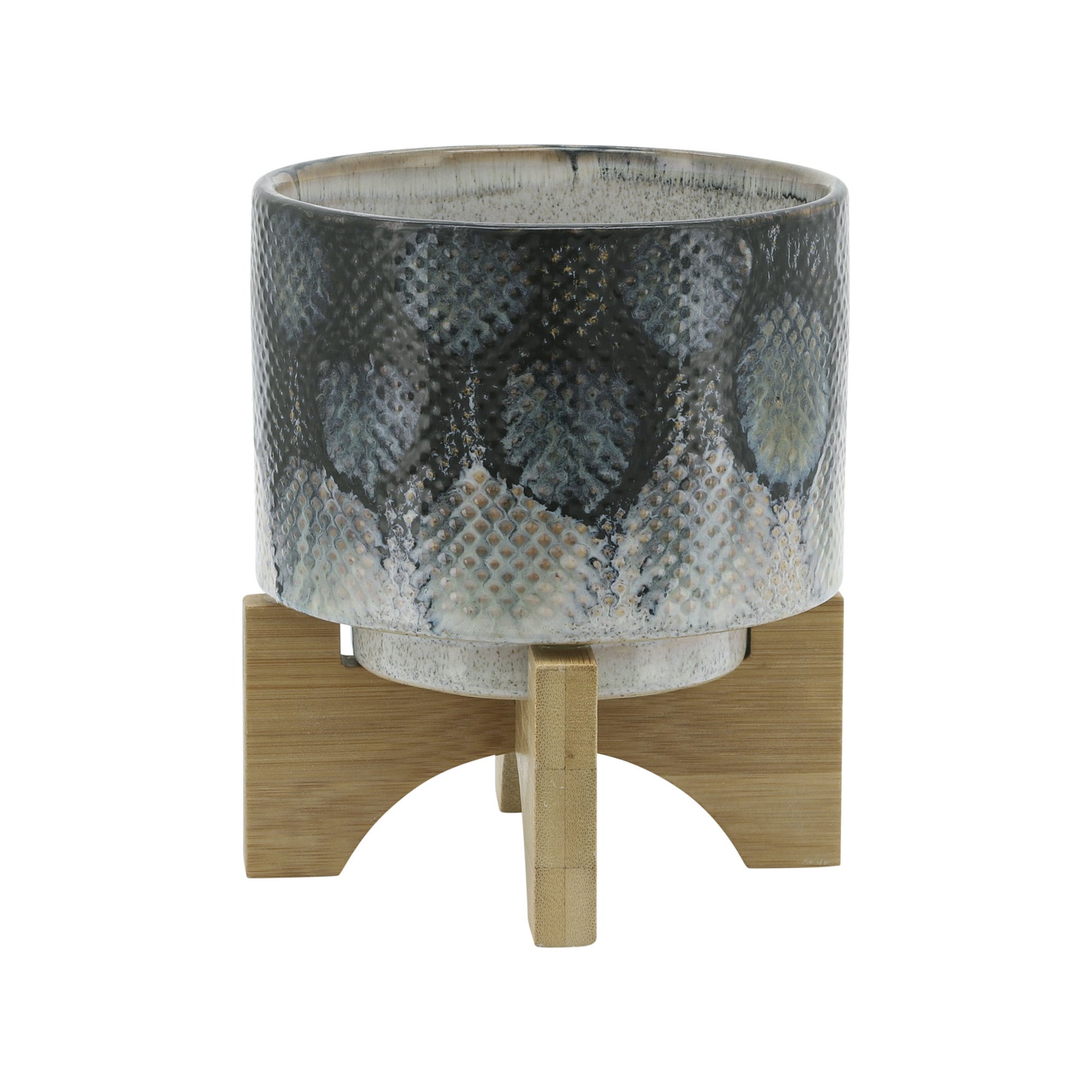 Cer, 5" Snakeskin Planter W/ Stand, Blue