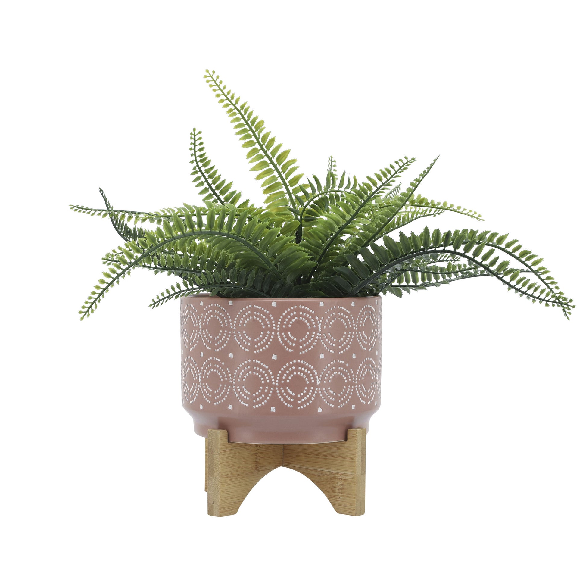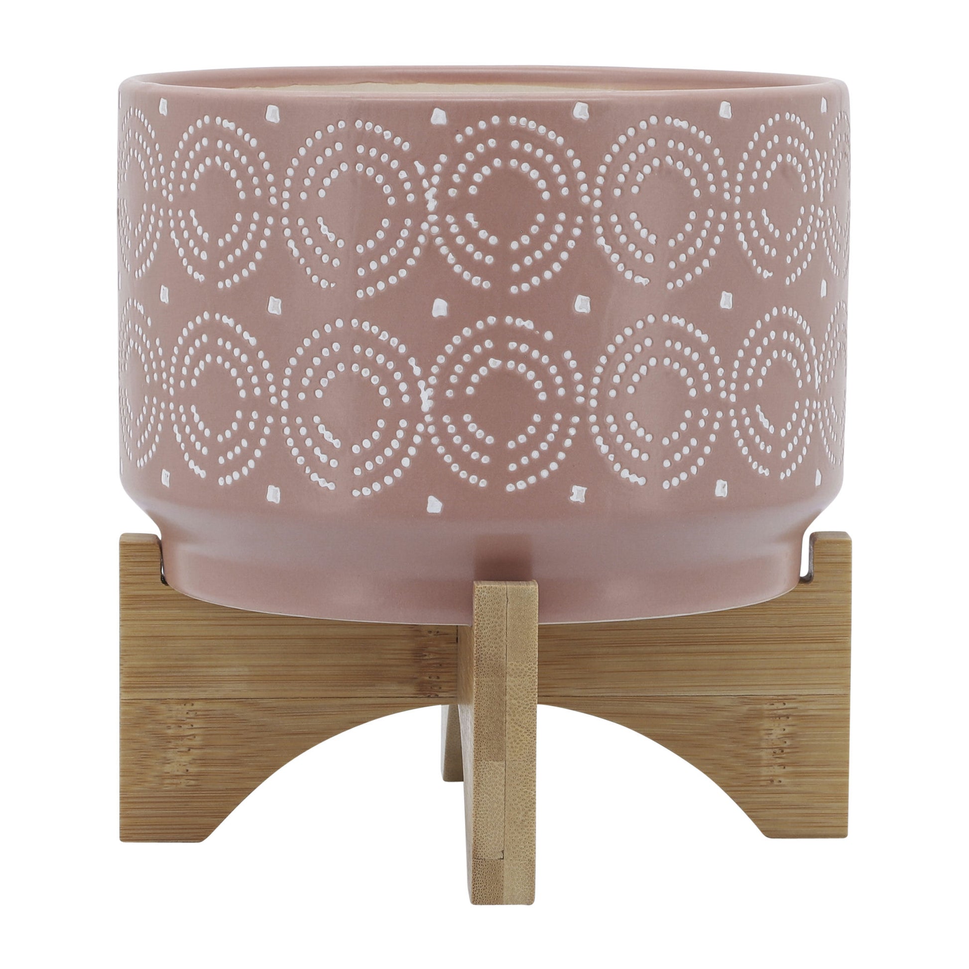 Ceramic planter with swirl and dot design on the exterior. It has a natural finish and the wood stand is glued to the planter. This beautiful piece will be a great addition to your living room or entry way.Sagebrook Home has been formed from a love of design, a commitment to service and a dedication to quality. They create and import fashion forward items in the most popular design styles. Backed with years of experience in the textile field, They are now providing a complete Home decor story. the combination of wall decor, furniture, lighting and Home accessories are all coordinated with textiles to provide a complete Home look. Sagebrook Home is committed to providing the best Home decor and accent pieces at value prices.