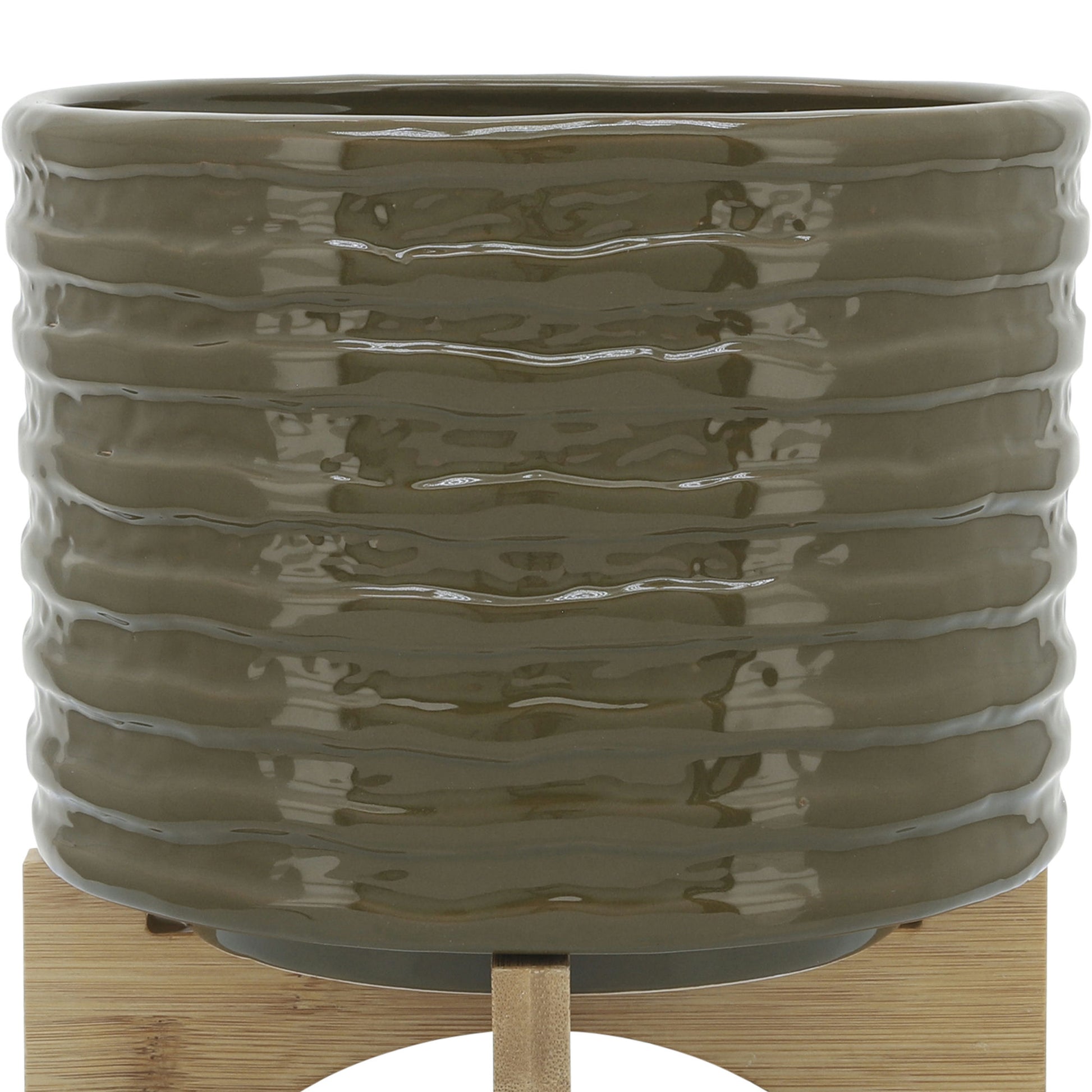 Ceramic planter with groove designs on the exterior. It has a glossy finish and the wood stand is glued to the planter. This beautiful piece will be a great addition to your living room or entry way.Sagebrook Home has been formed from a love of design, a commitment to service and a dedication to quality. They create and import fashion forward items in the most popular design styles. Backed with years of experience in the textile field, They are now providing a complete Home decor story. the combination of wall decor, furniture, lighting and Home accessories are all coordinated with textiles to provide a complete Home look. Sagebrook Home is committed to providing the best Home decor and accent pieces at value prices.