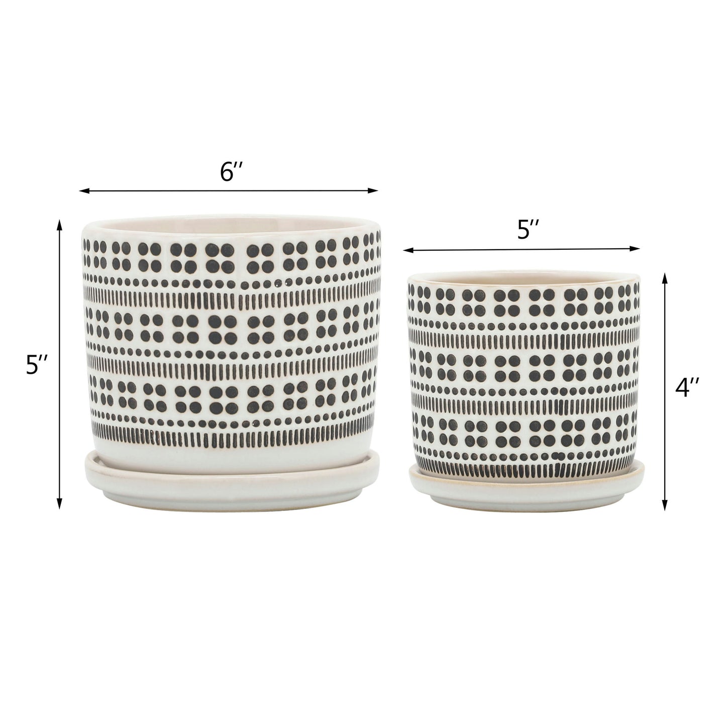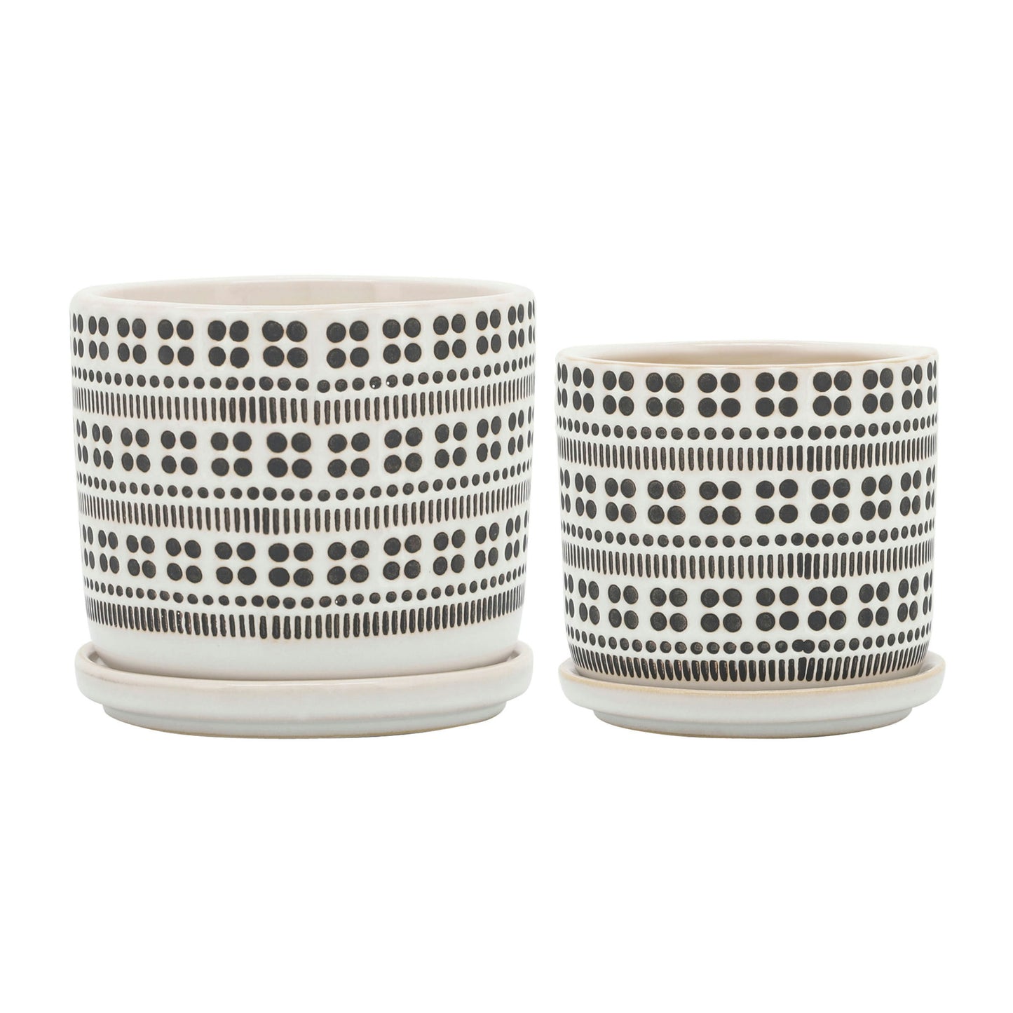 Cer, S/2 5/6" Abstract Planters W/ Saucer, Ivory, Dot Pattern
