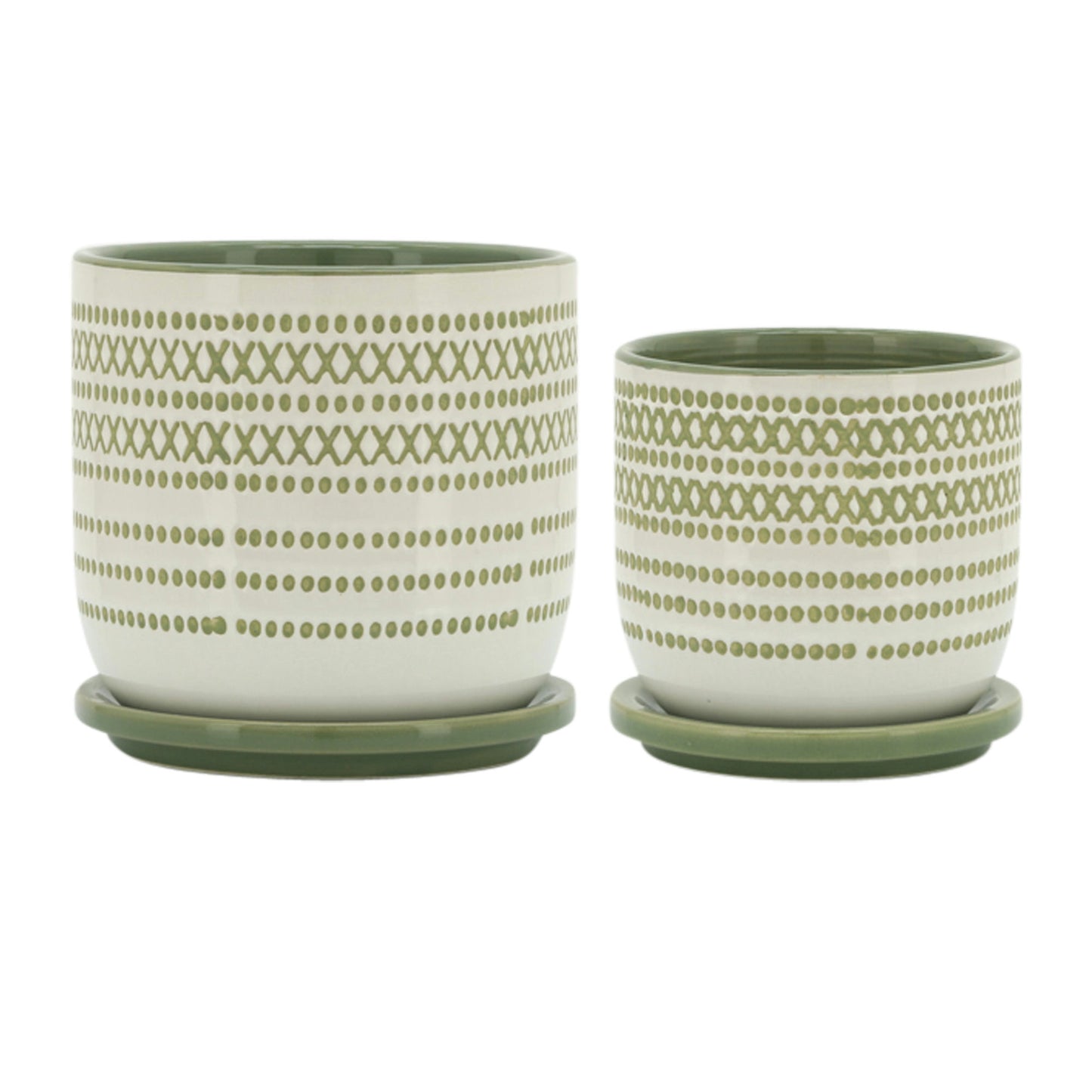 Cer, S/2 5/6" Planter W/ Saucer, Olive
