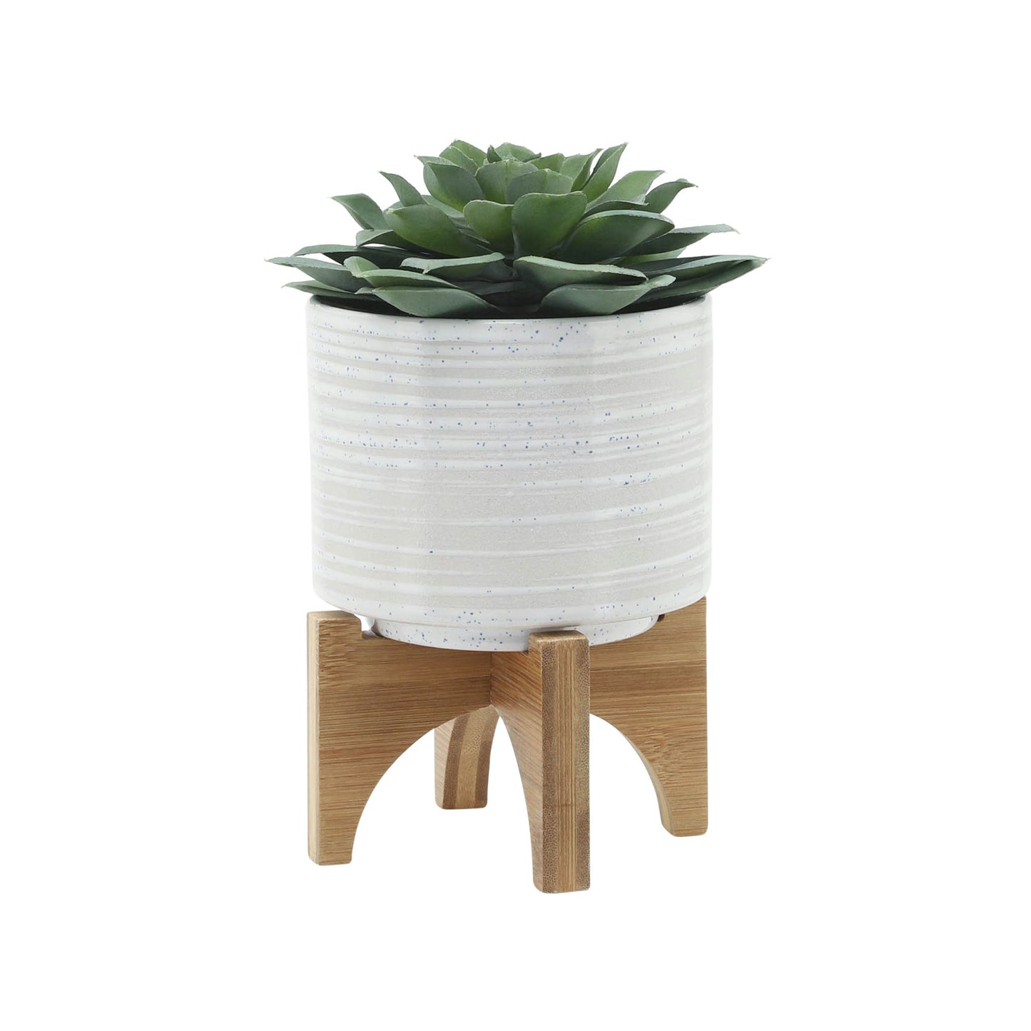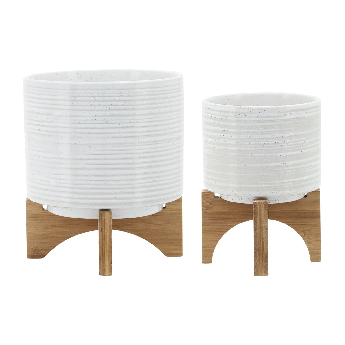 Cer, S/2 5/8" Planter On Stand, Speckled White