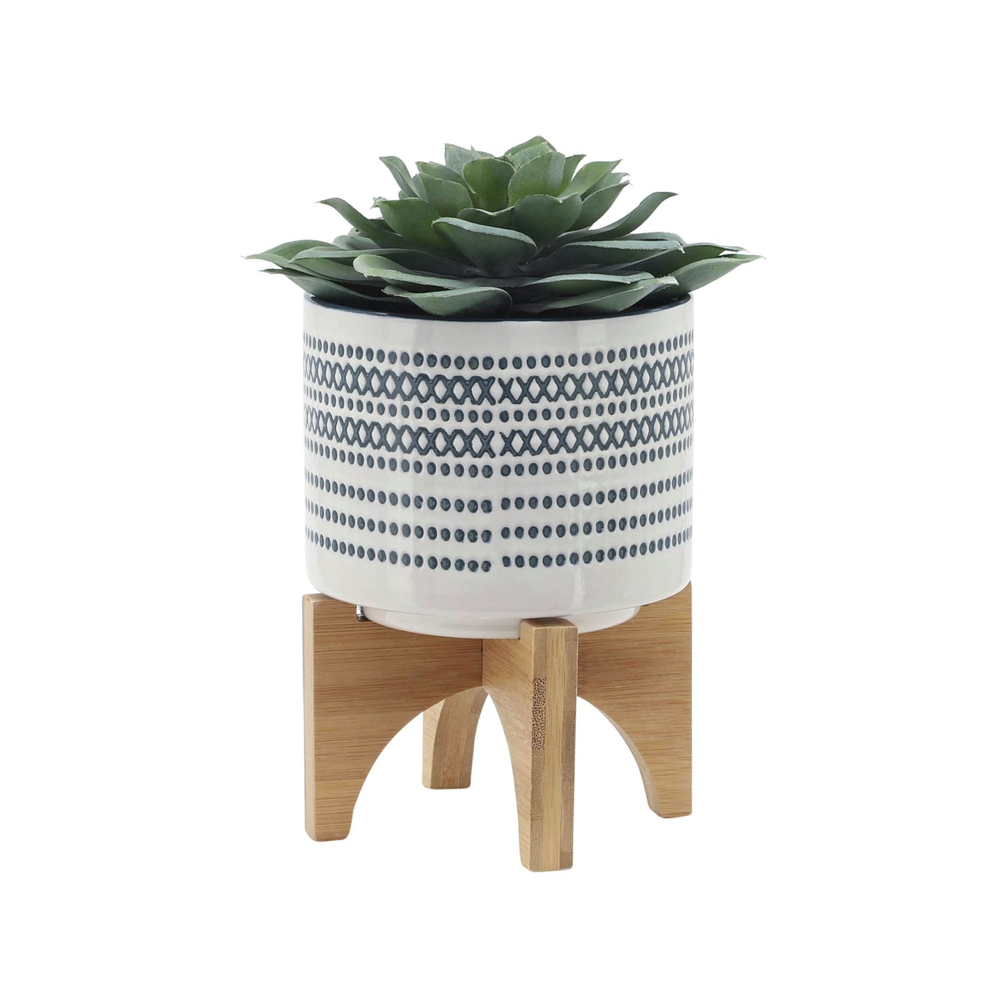Cer, S/2 5/8" Planter On Standw/ Dots, Blue