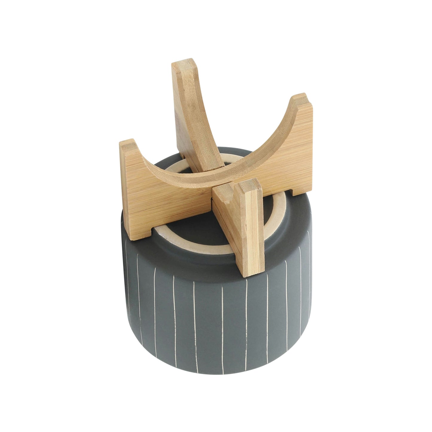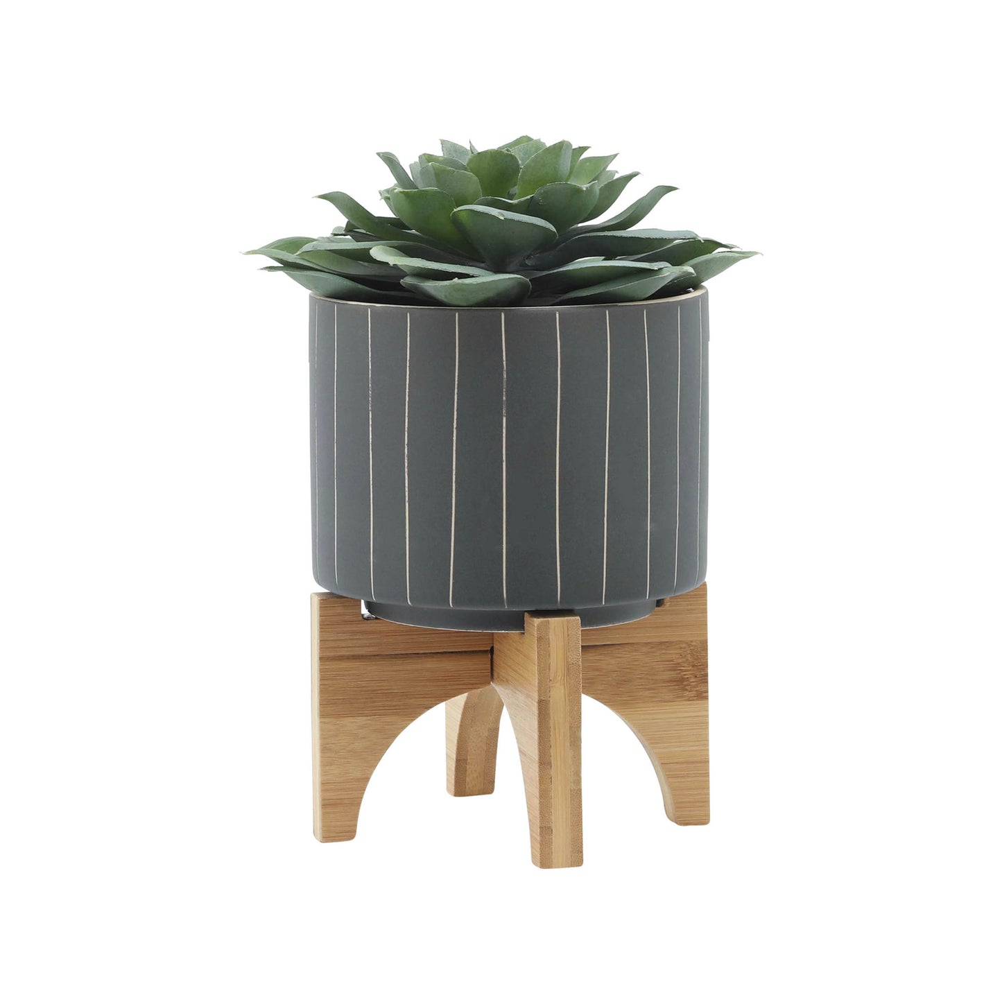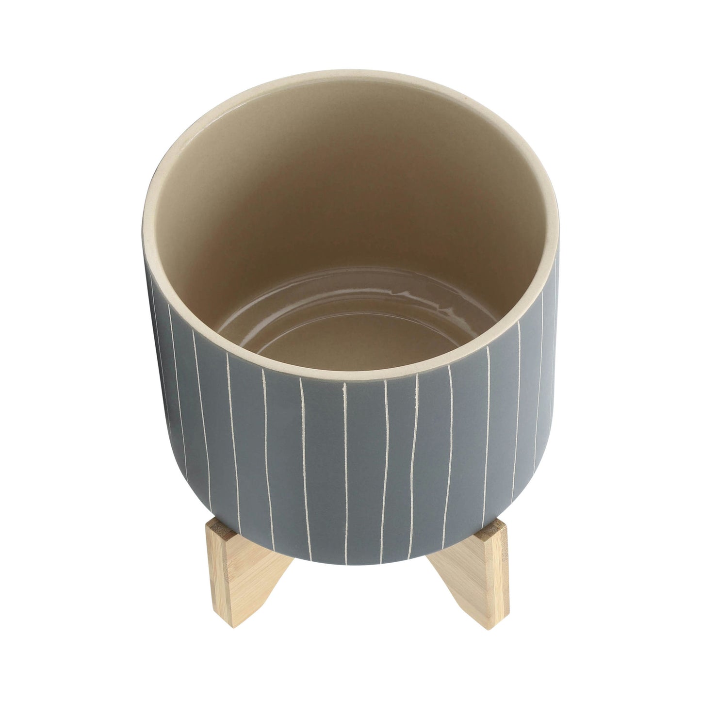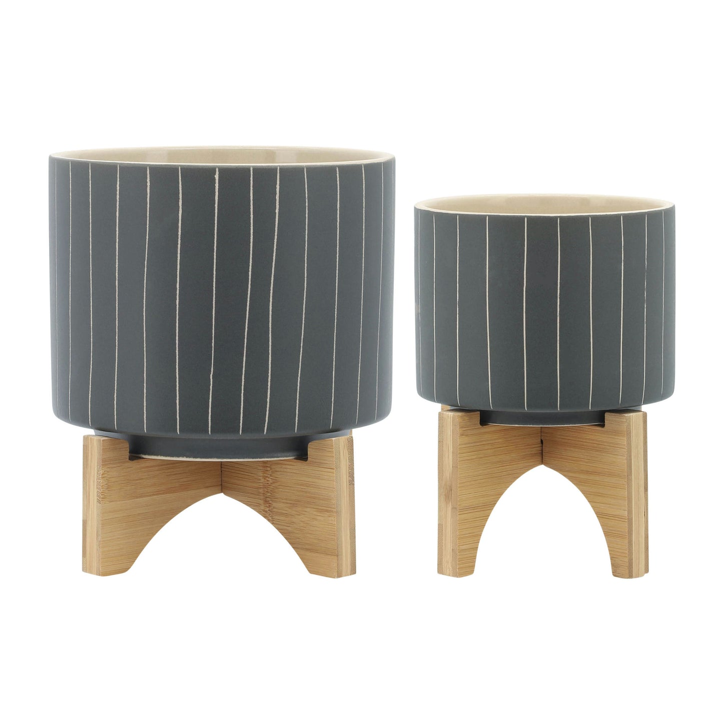 Cer, S/2 5/8" Stripes Planter W/ Stand, Gray