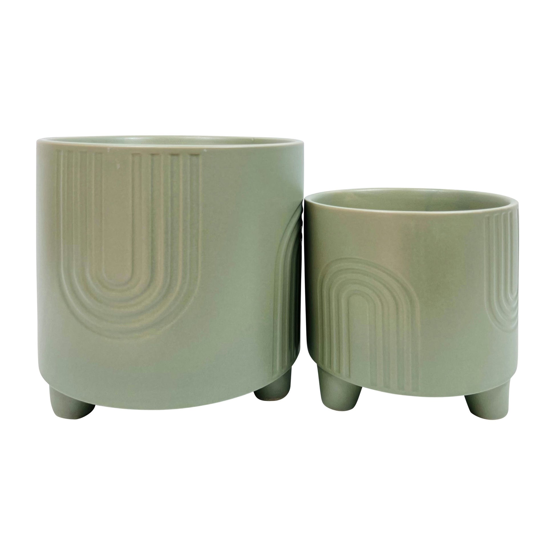 Cer,s/2,6/8", Bravais Footed Planter , Olive