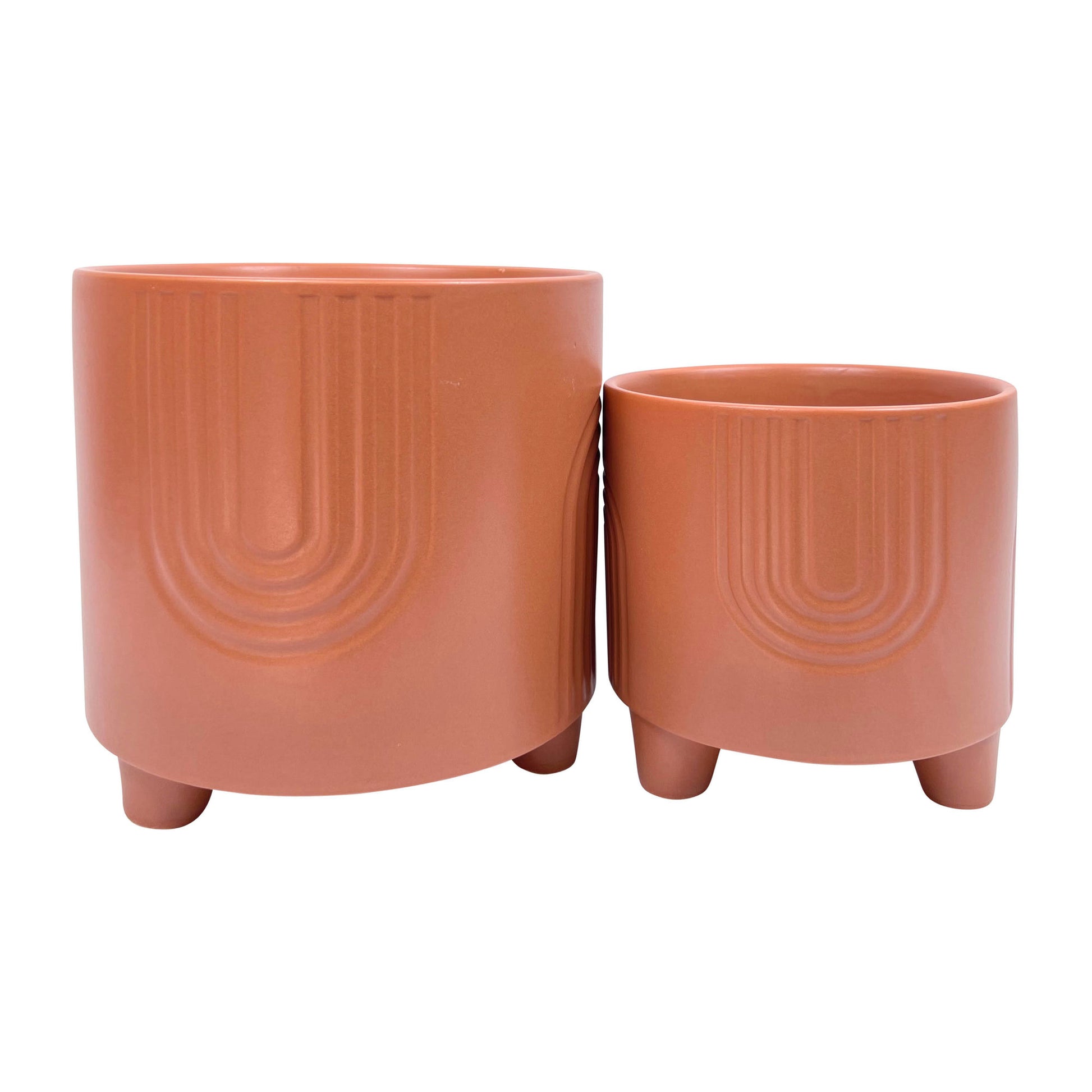 Cer,s/2,6/8", Bravais Footed Planter , Terracotta