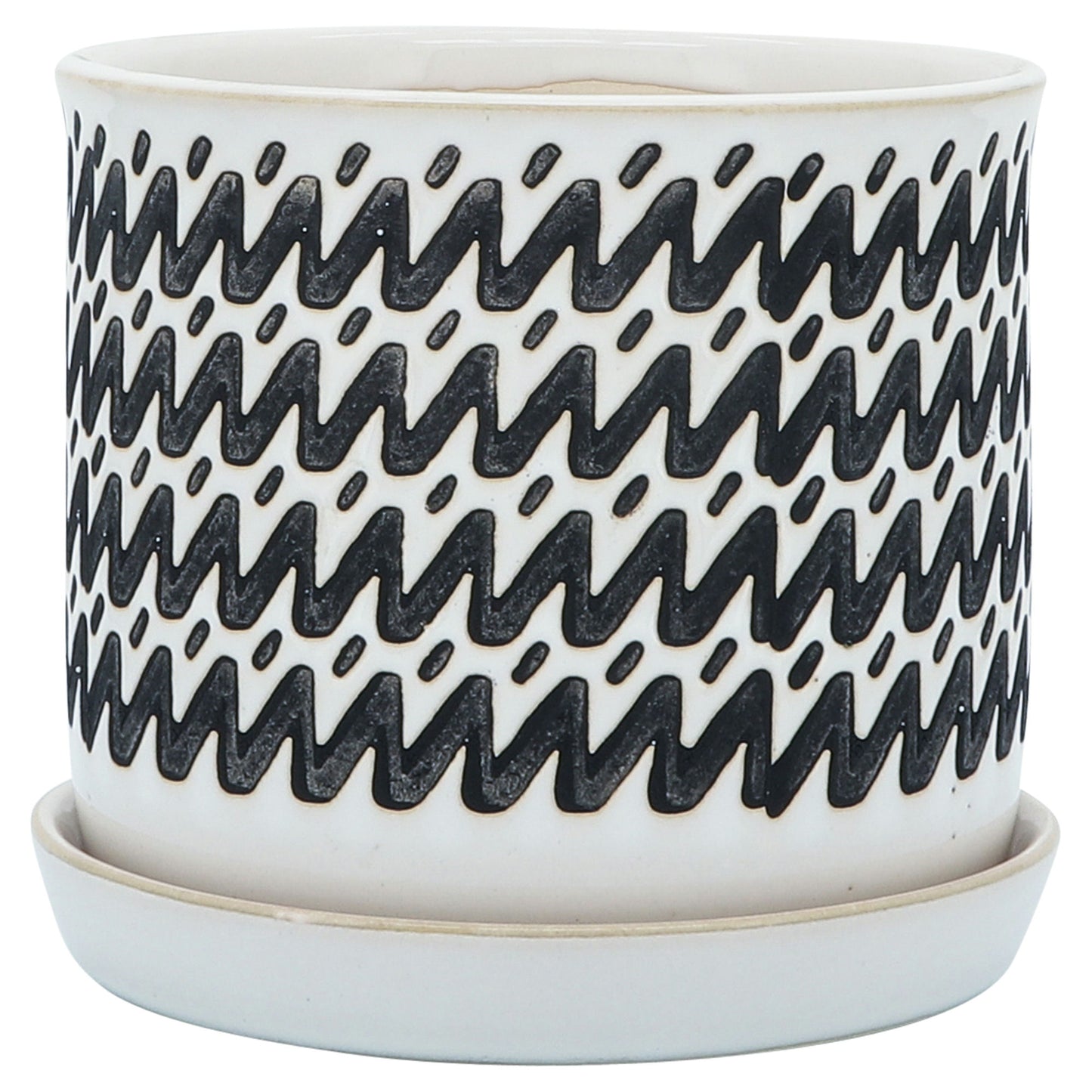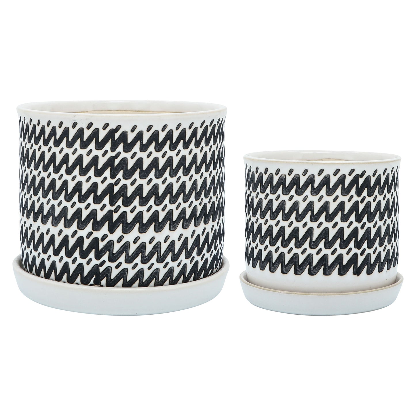 Cer, S/2 6/8" Zigzag Planter W/ Saucer , Black