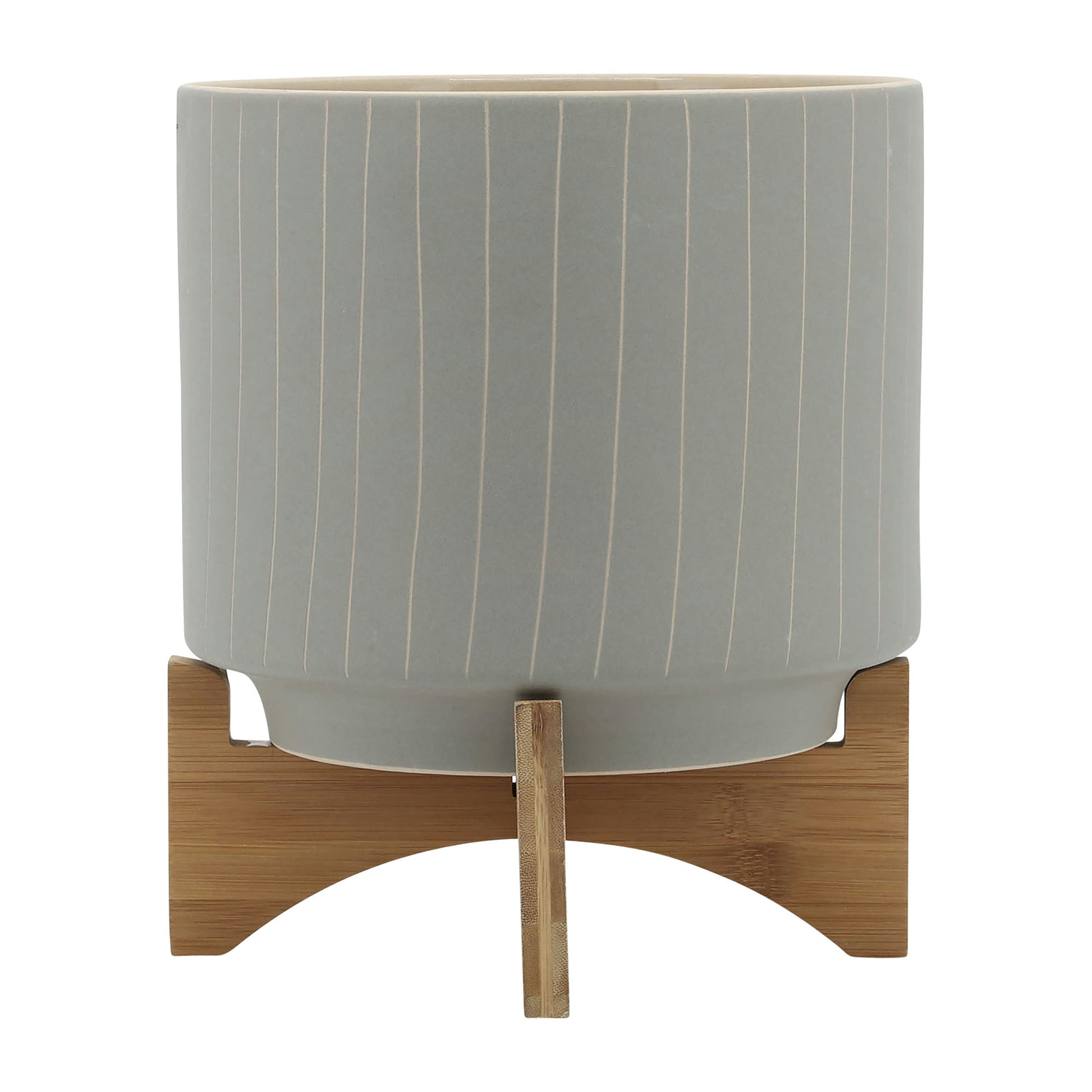 Cer, S/2 8/10" Stripes Planter W/ Stand, Tan