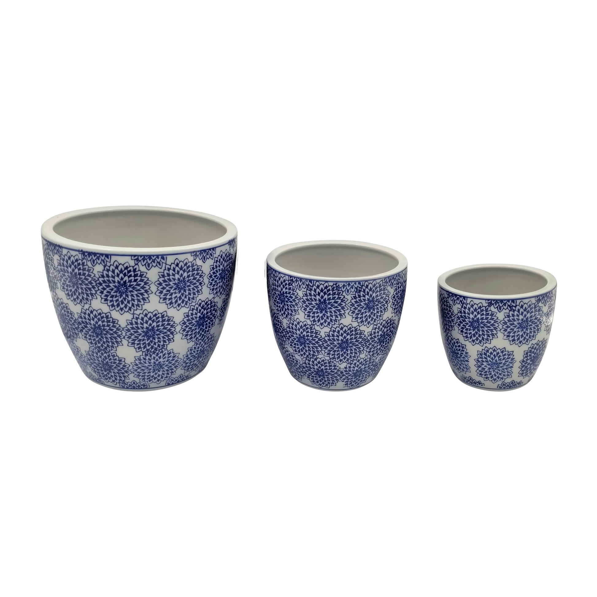 Cer, S/3 6/8/10" Chinoiserie Planters, Blue/white