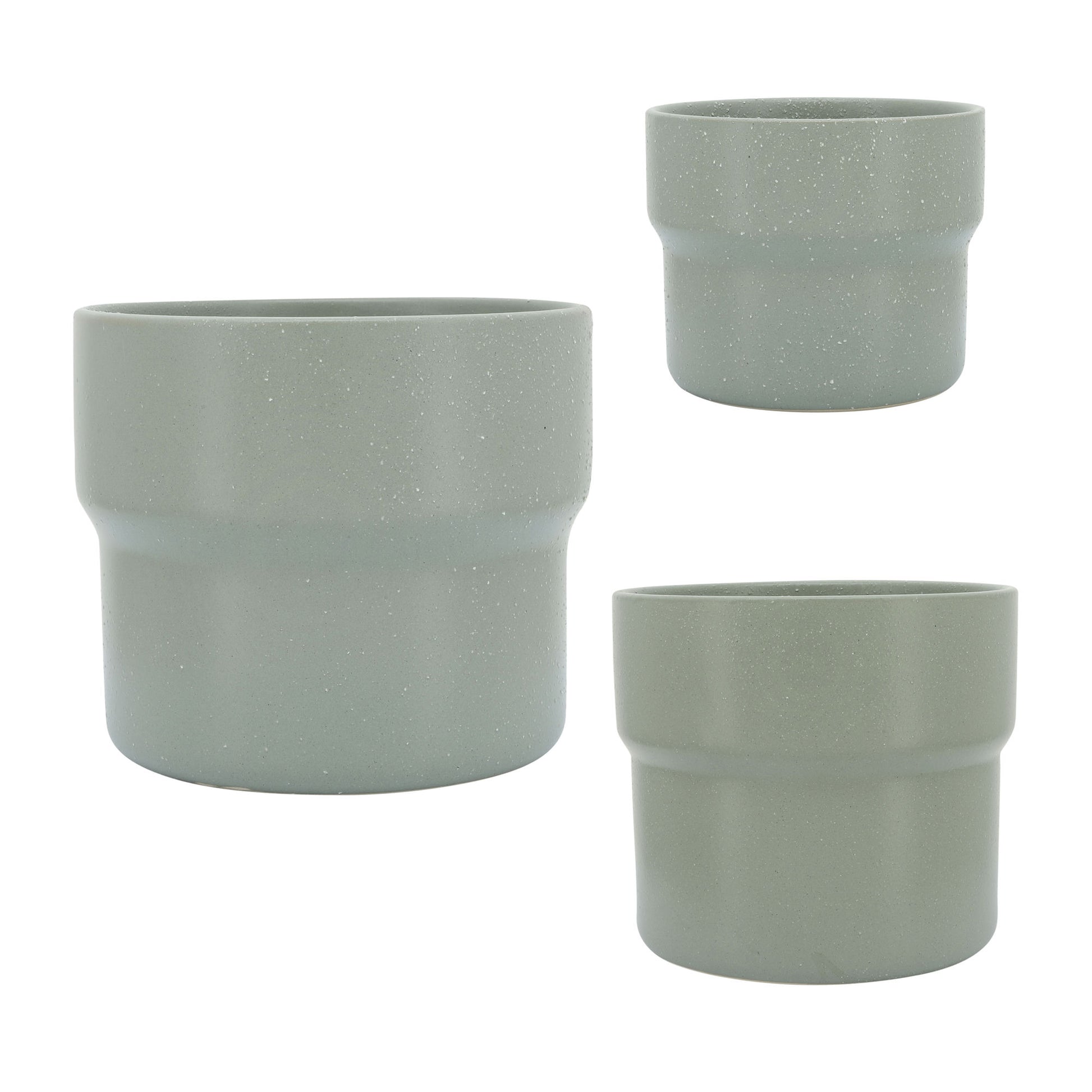 Cer, S/3 7/9/10"d Mushroom Planters, Greeen