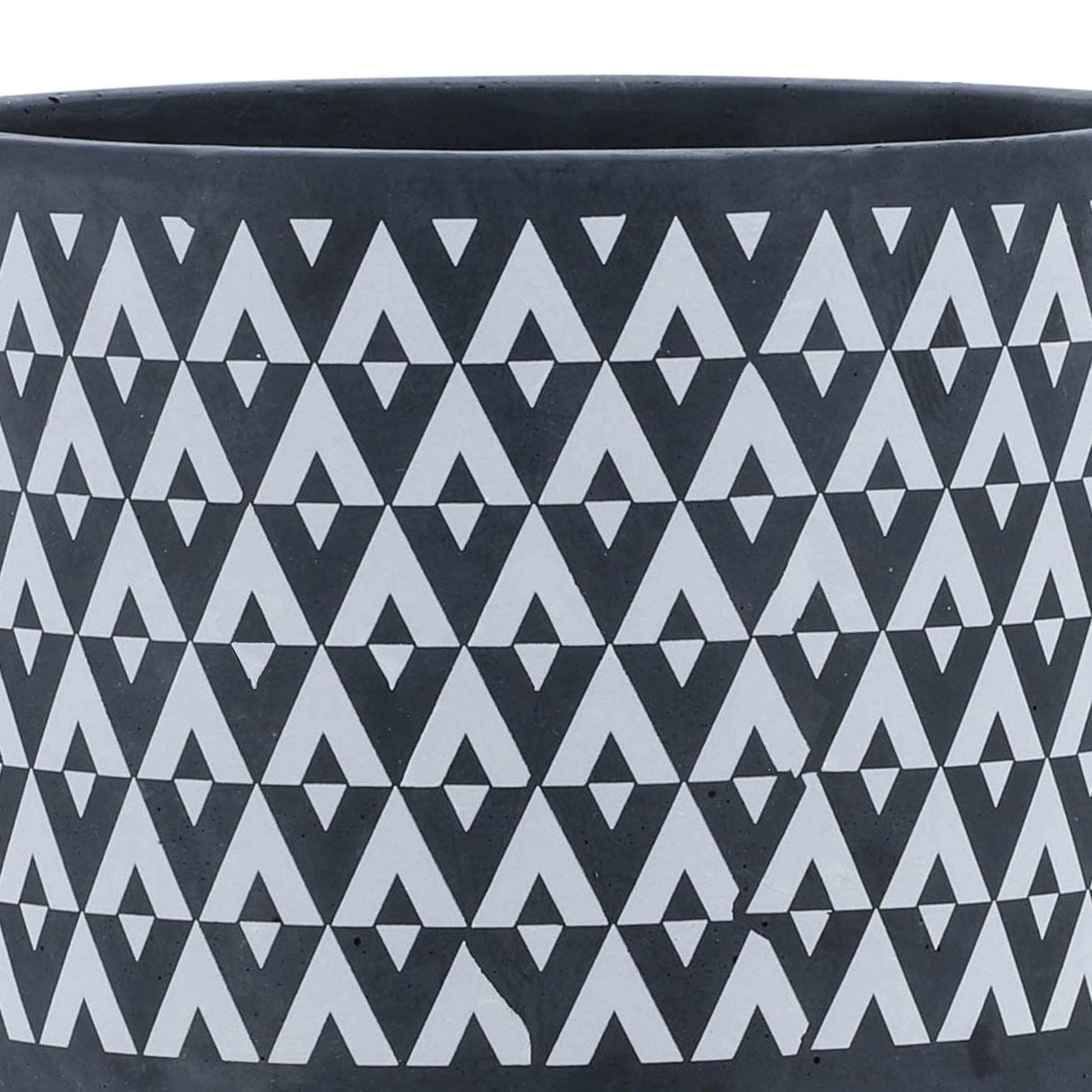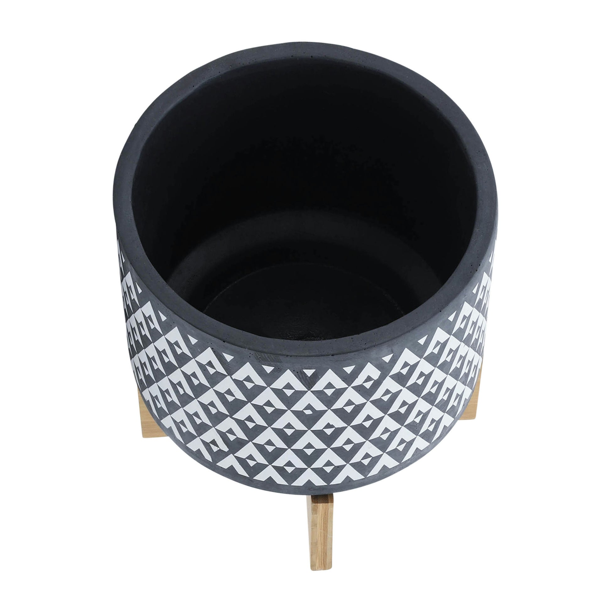 Ceramic 10" Aztec Planter On Wooden Stand, Gray & White