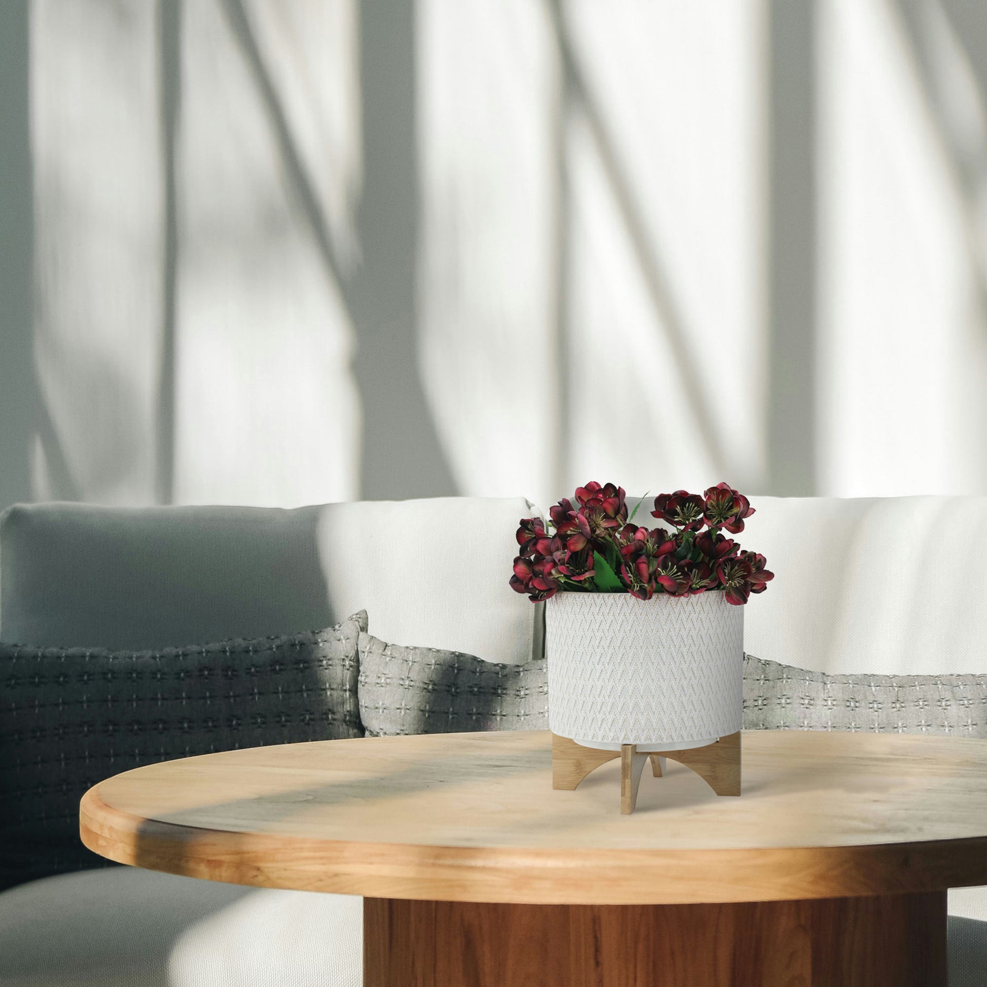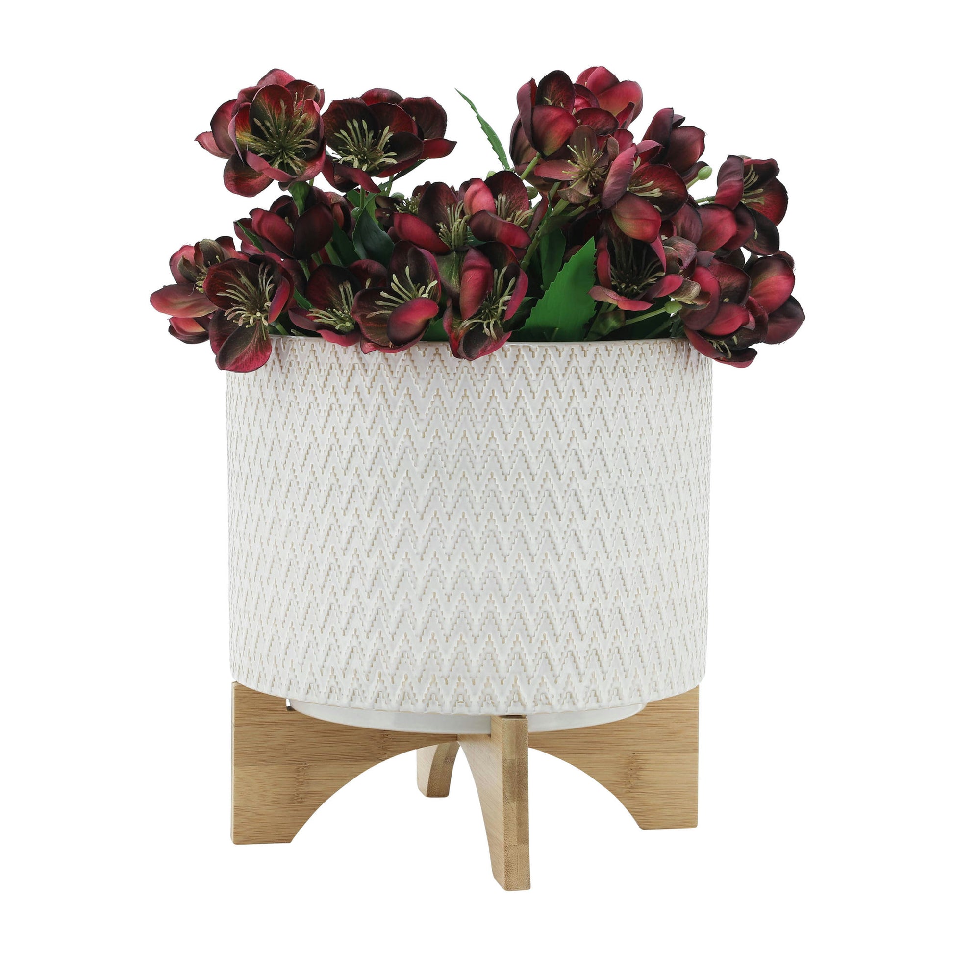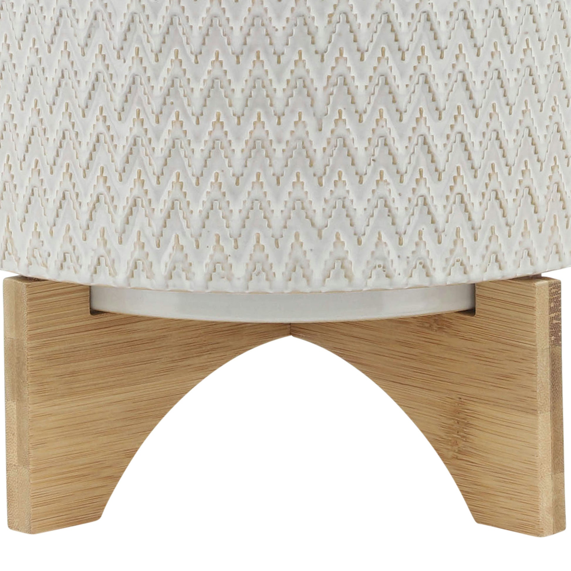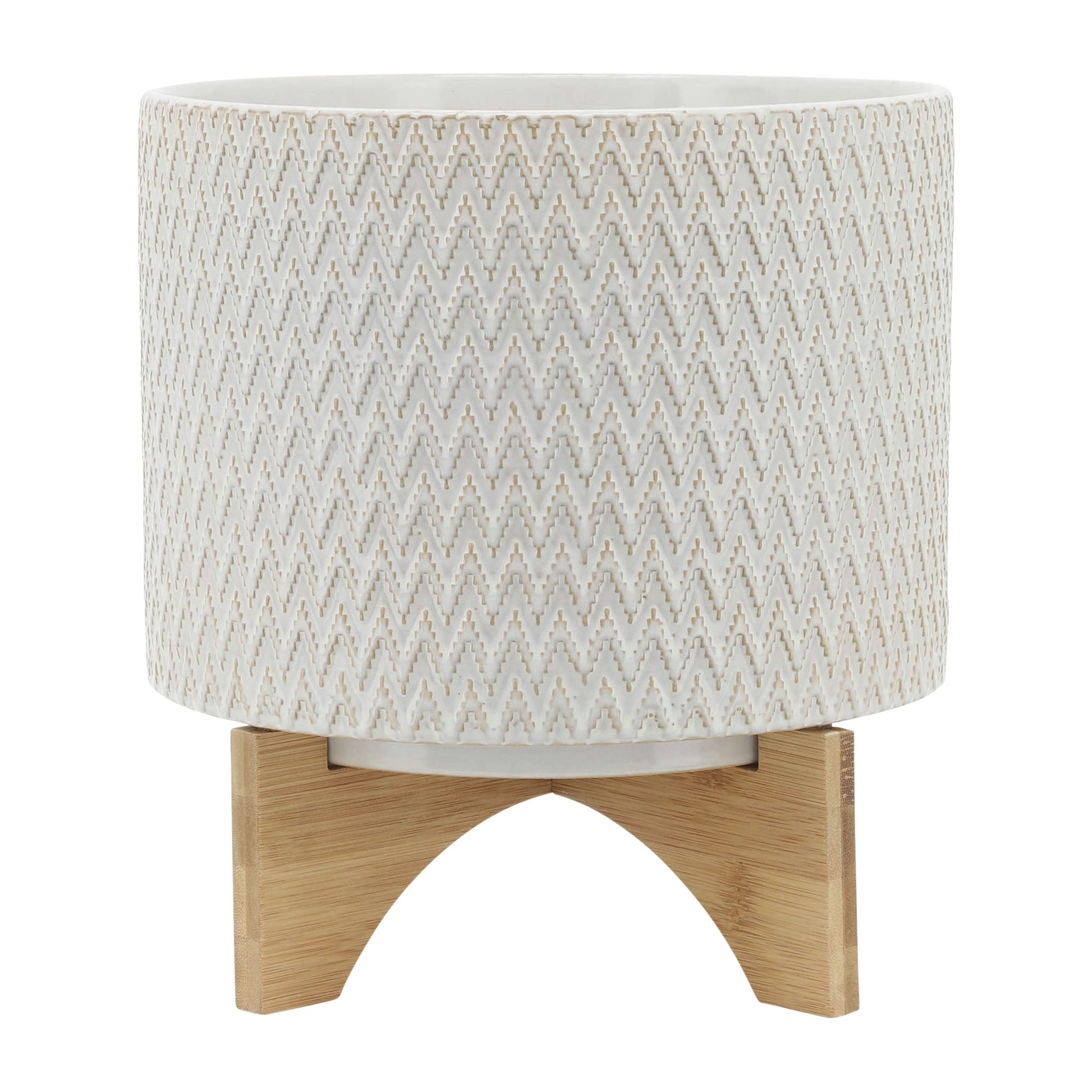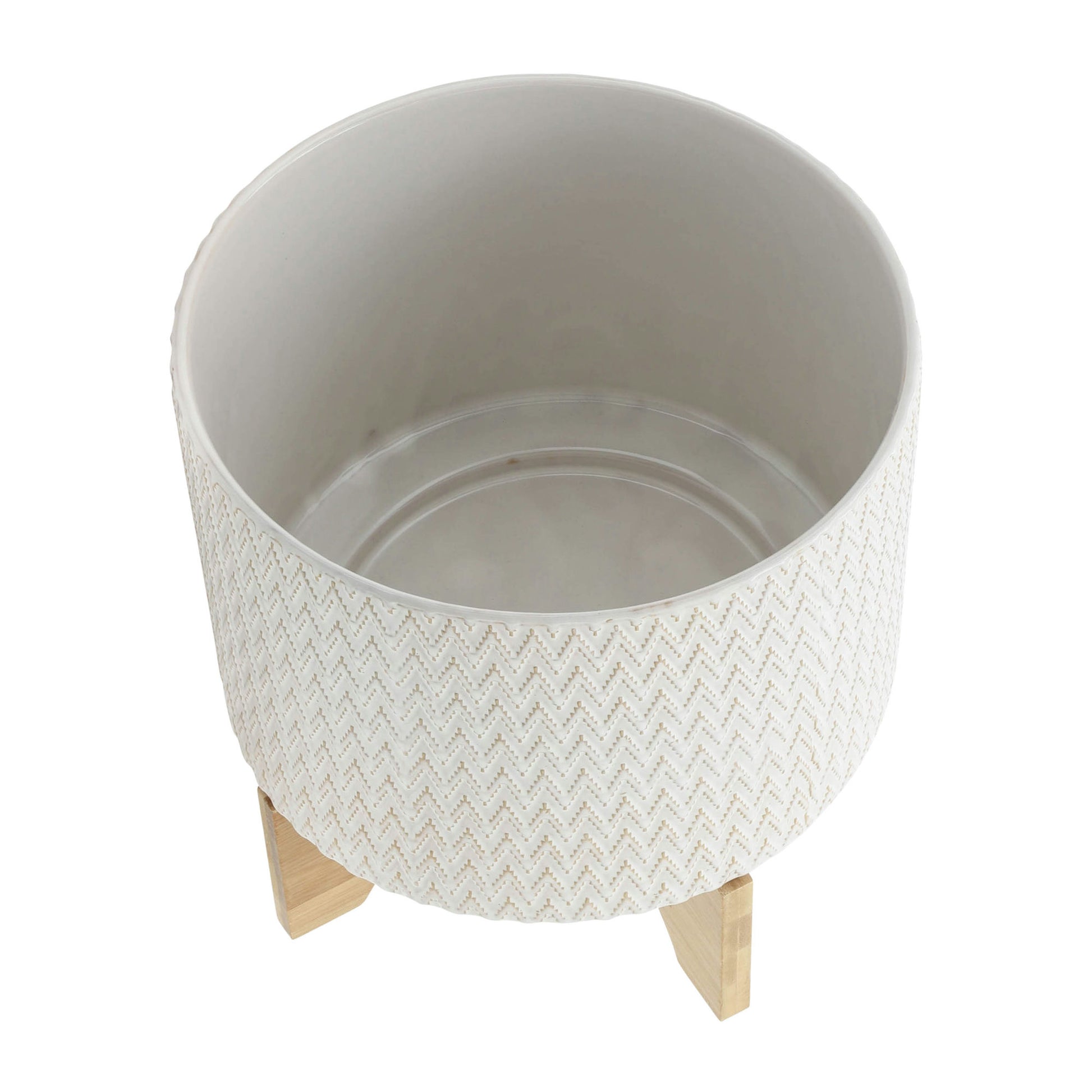 Ceramic 10" Chevron Planter On Stand, Ivory
