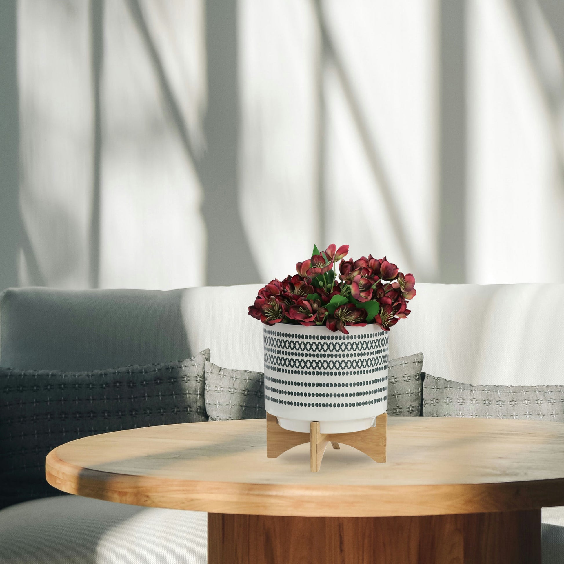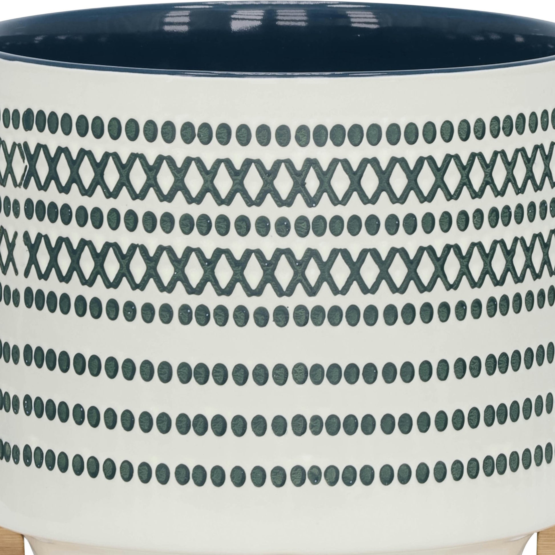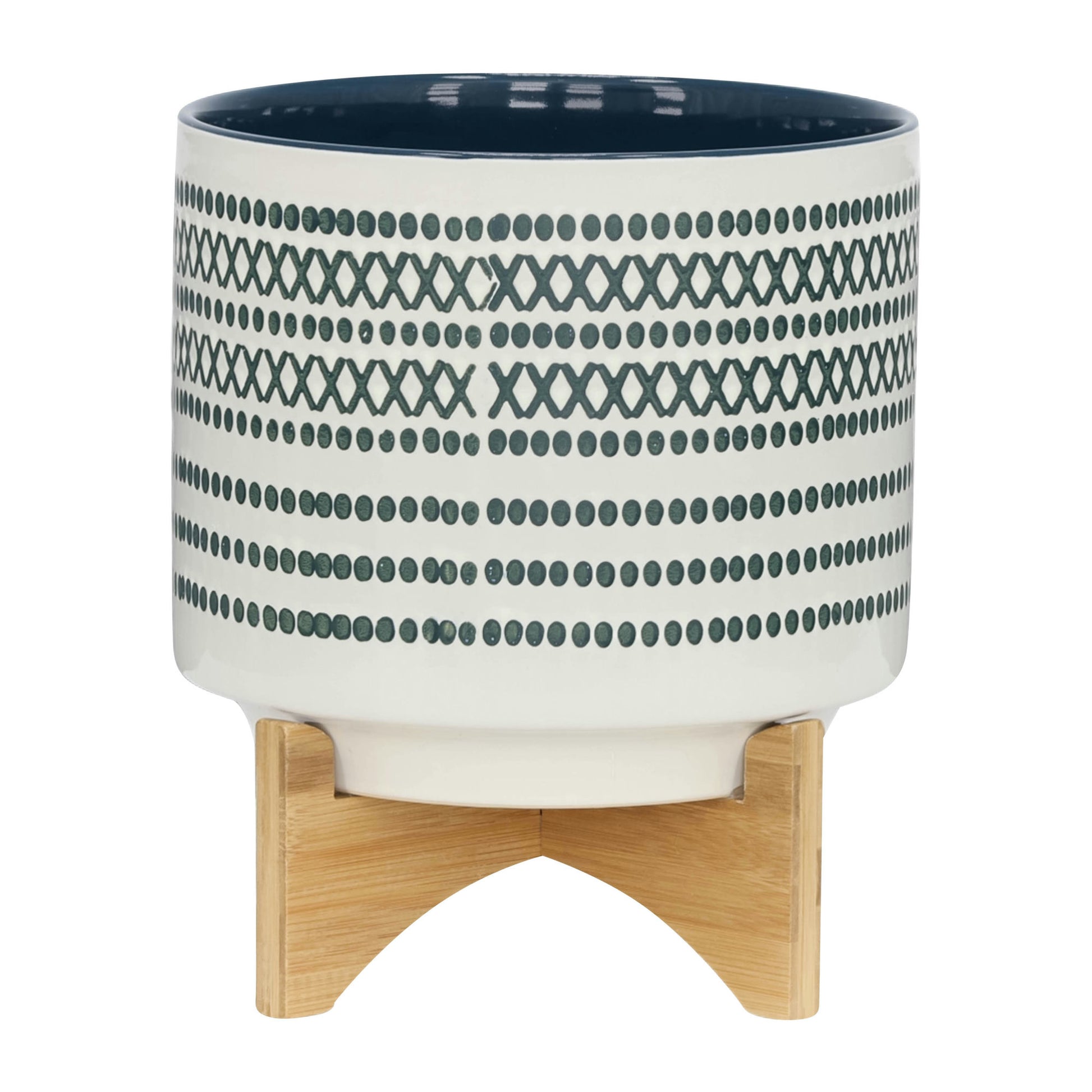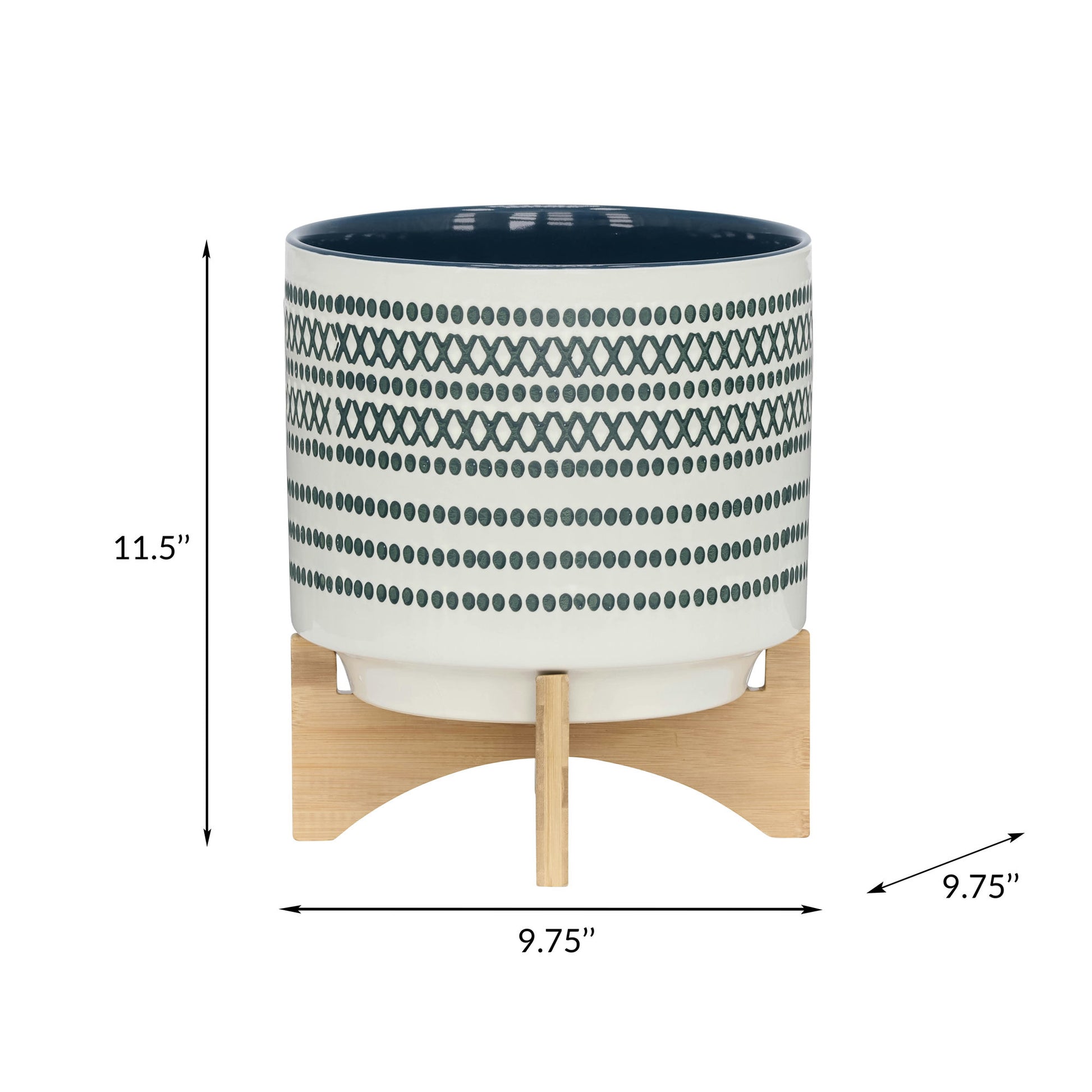 Ceramic 10" Planter On Standw/ Dots, Blue