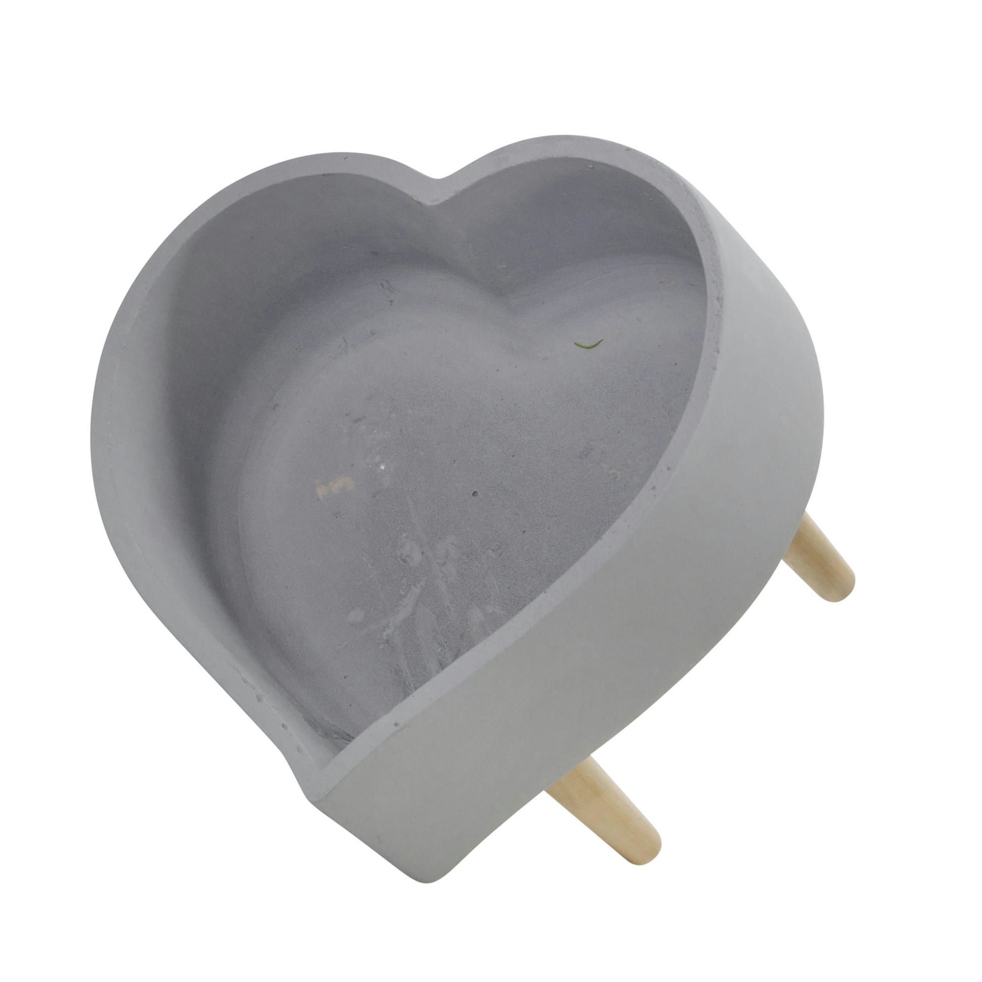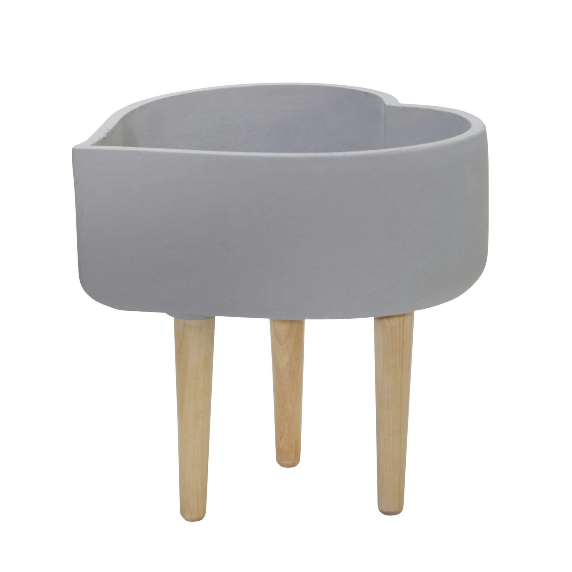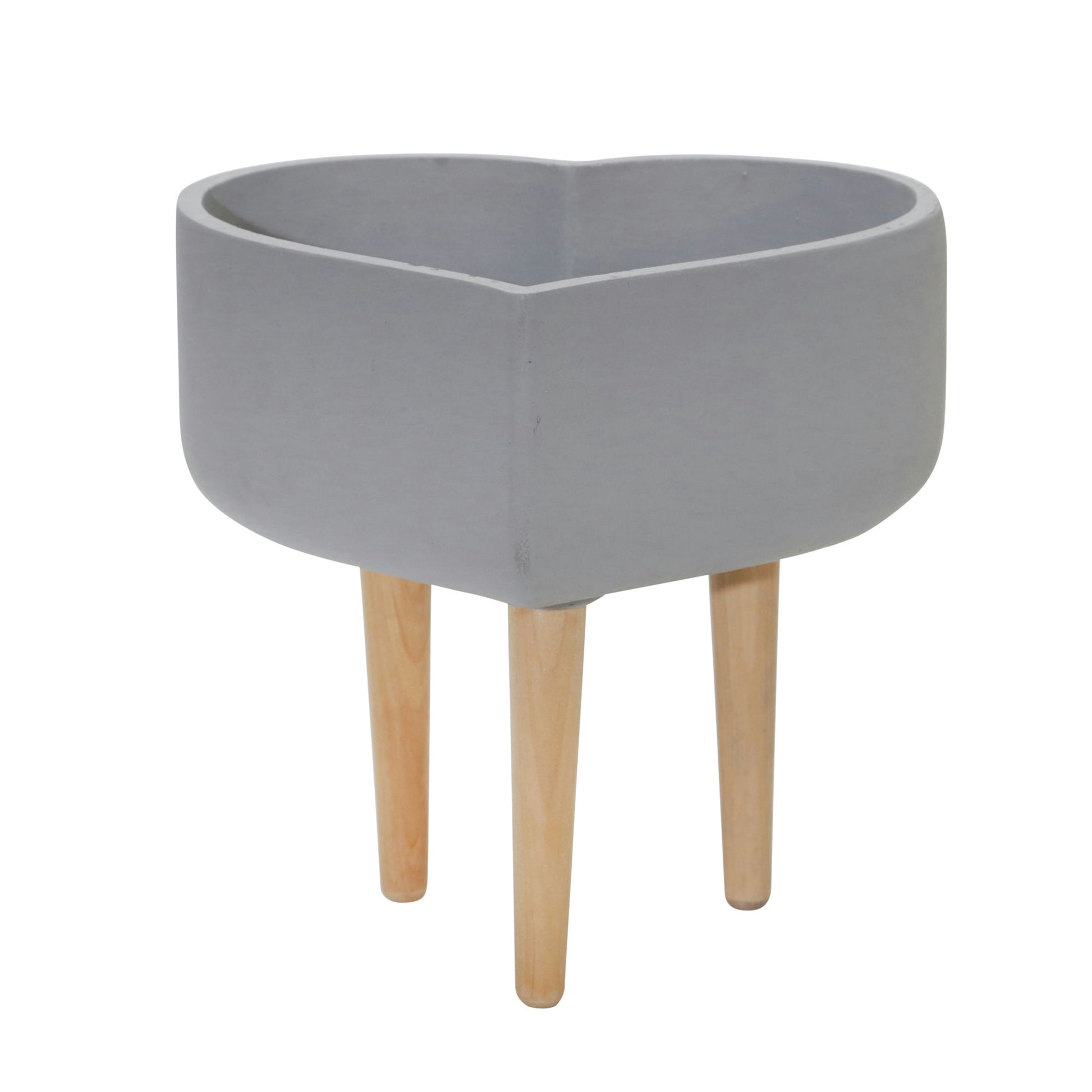 Ceramic 11" Heart Planter W/ Wooden Legs, Gray