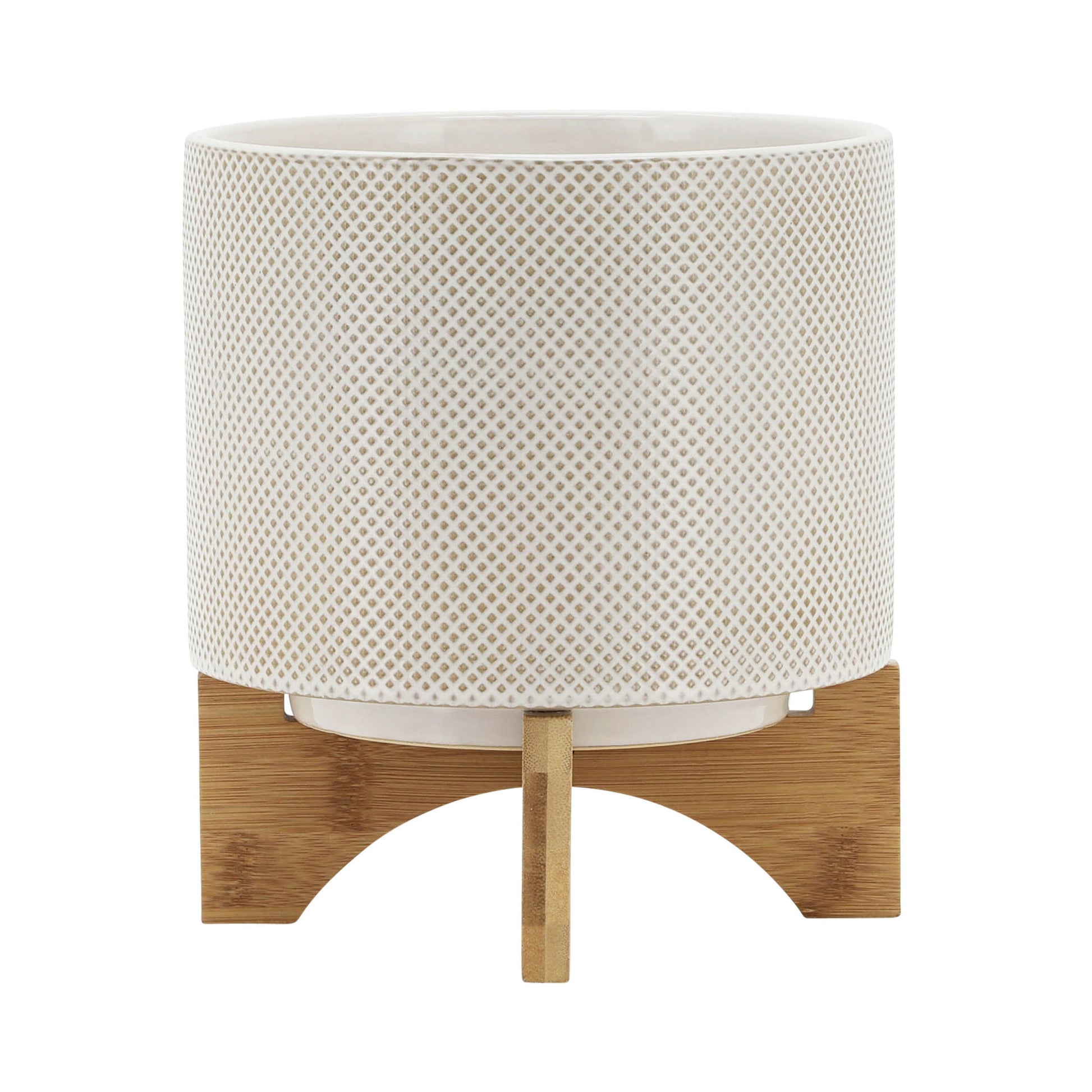 There is never a wrong place to decor your home with a polka dot planter pot. Beautiful ceramic round planter sitting on a wood stand with a tan polka dot design on the exterior . This stunning planter will look great anywhere you place it.Sagebrook Home has been formed from a love of design, a commitment to service and a dedication to quality. They create and import fashion forward items in the most popular design styles. Backed with years of experience in the textile field, They are now providing a complete Home decor story. the combination of wall decor, furniture, lighting and Home accessories are all coordinated with textiles to provide a complete Home look. Sagebrook Home is committed to providing the best Home decor and accent pieces at value prices.