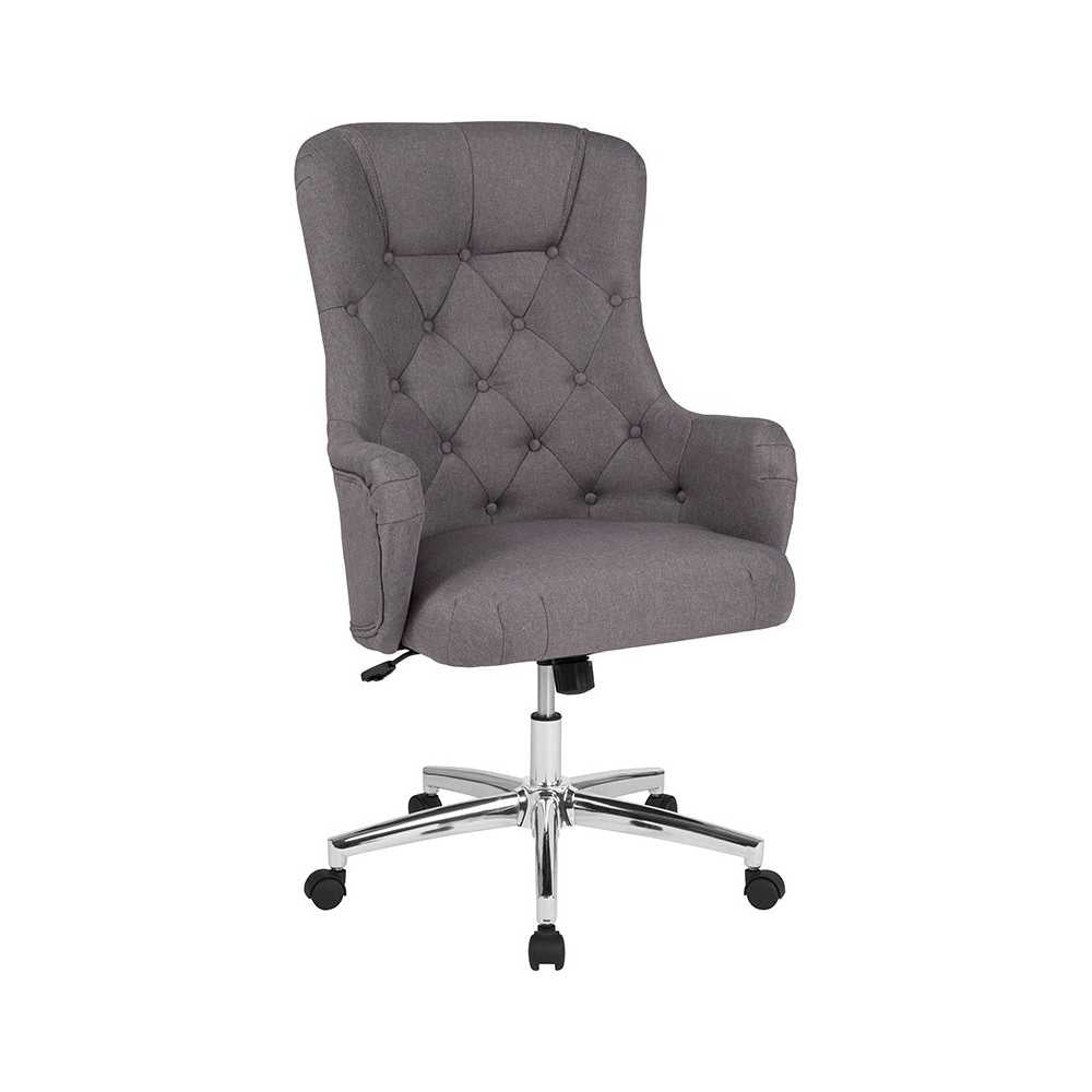 Looking to add style and glamour to your home office or work space, then pick up this beauty. This luxurious high back office chair is a statement piece, offering comfort and greater support because of the deep seat and high back. The sumptuous padding and diamond pattern back with button tufted details creates a tailored look that speaks of style and class. Turn the tilt tension adjustment knob to increase or decrease the amount of force needed to rock or recline. Lock the seat in place with the tilt lock mechanism. Raise and lower your seat height using the pneumatic seat height adjustment lever, conveniently located under the seat. The 360 degree swivel function allow you to maximize your immediate workspace. The chrome base and casters provide support as well as easy maneuverability. This stylish swivel home office chair will work in a contemporary or traditional setting. [BT-90557H-LGY-F-GG]