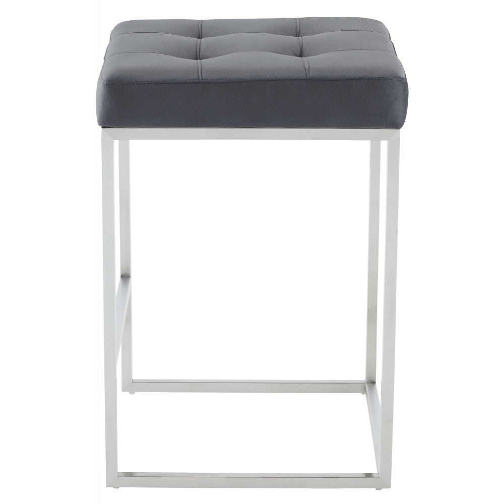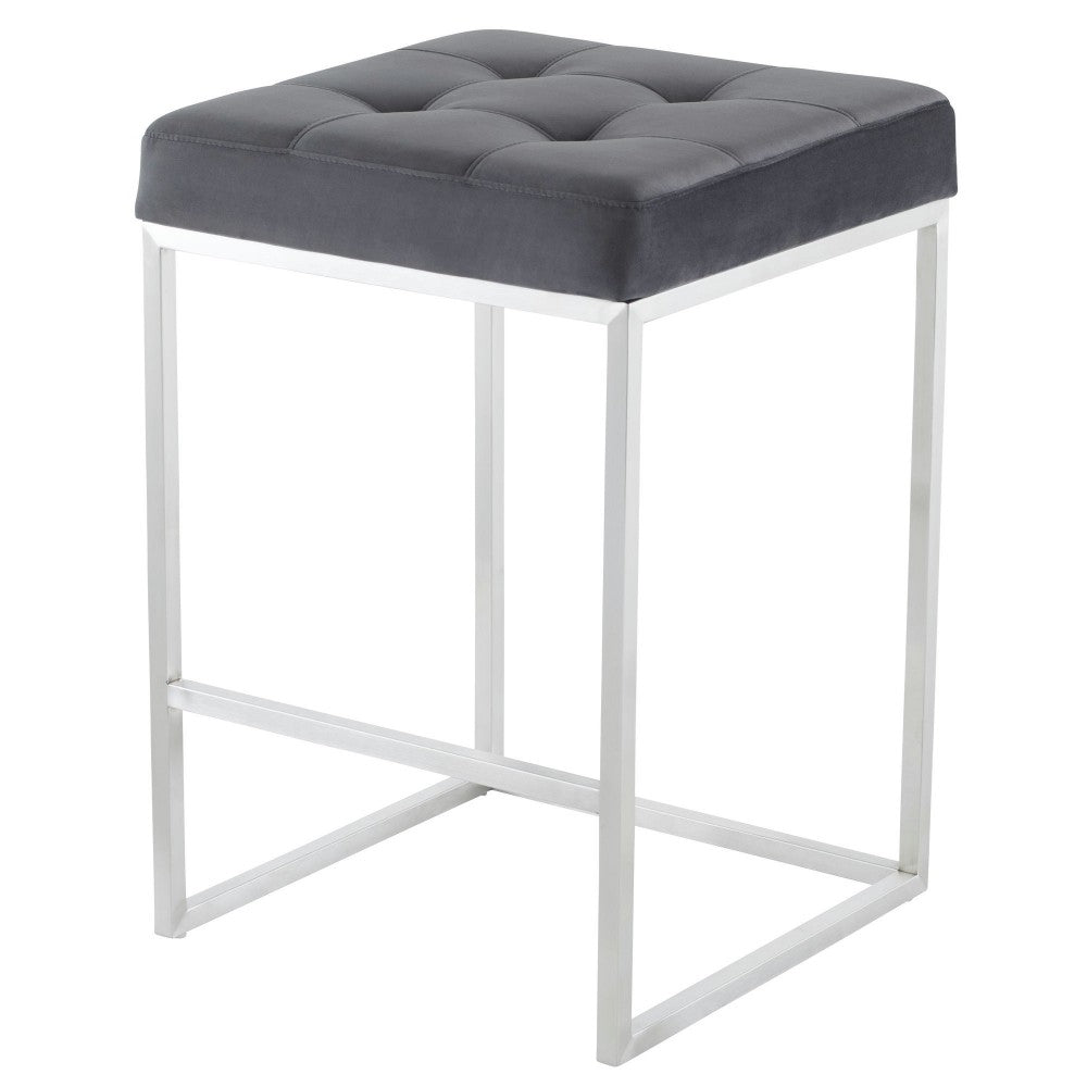 The Chi counter stool is an ideal example of simple elegant modern design. The brushed stainless steel frame, including fixed foot rest, uses a bare minimum of materials in its construction creating an exceptionally light effect. The stool is topped with a dense form fitting tufted velour seat cushion for added comfort.