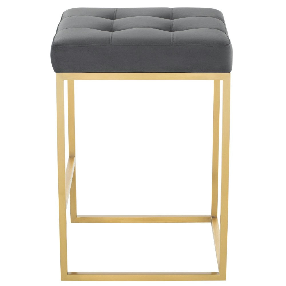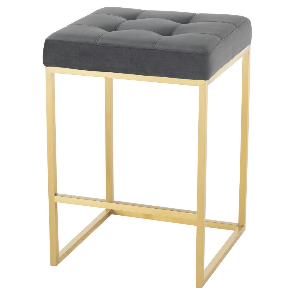 The Chi counter stool is an ideal example of simple elegant modern design. The brushed gold stainless steel frame, including fixed foot rest, uses a bare minimum of materials in its construction creating an exceptionally light effect. The stool is topped with a dense form fitting tufted velour seat cushion for added comfort.