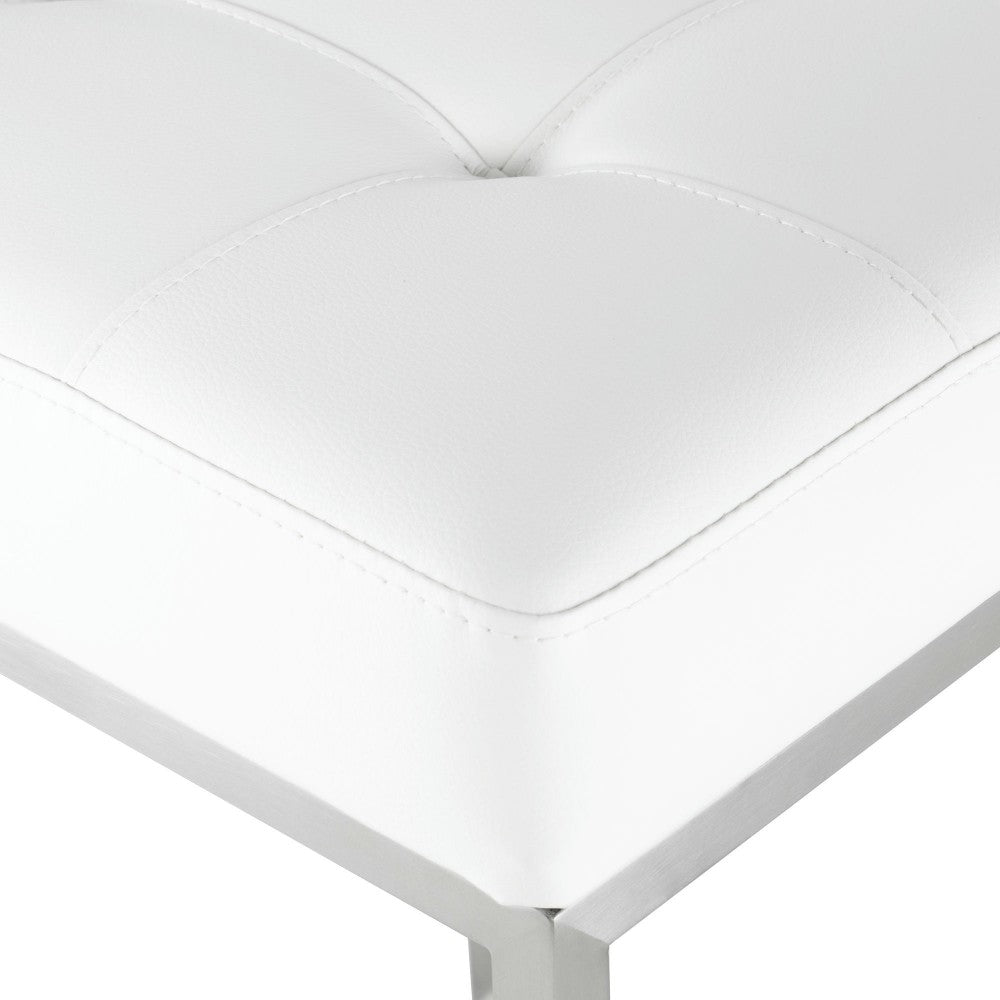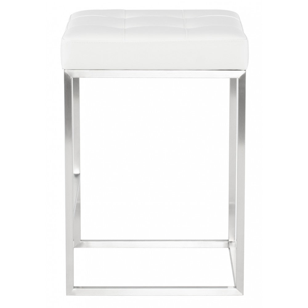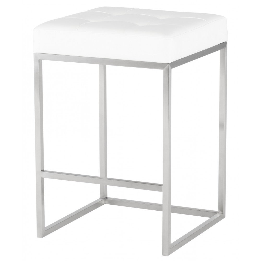 The Chi counter stool is an ideal example of simple elegant modern design. The brushed stainless steel frame, including fixed foot rest, uses a bare minimum of materials in its construction creating an exceptionally light effect. The stool is topped with a dense form fitting tufted naugahyde seat cushion for added comfort.