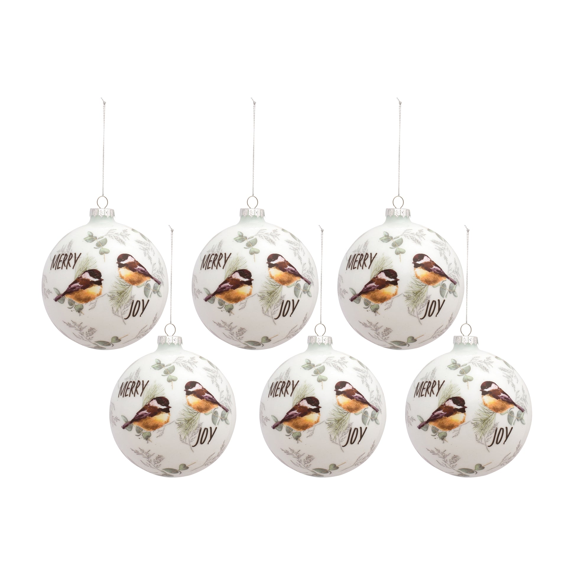Chickadee Ball Ornament (Set Of 6) 5"D Glass