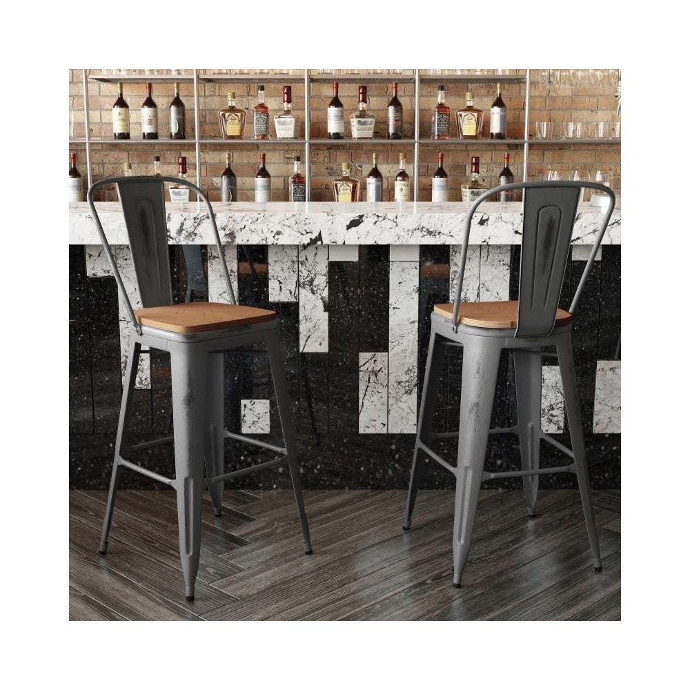 Completely transform your home or office space with this vintage style indoor bar stool with a poly resin seat available in multiple colors. This stylish clear coated stool can rev up any setting and the versatility of this chair easily conforms in different environments. An under-seat cross brace provides additional stability, and the lightweight design allows for easy movement and transportation. The polystyrene seat won't peel, chip, or rot providing long-lasting use. Protective rubber glides keep your flooring surfaces in pristine condition. Assembly of this on-trend stool takes less than 10 minutes and cleanup is quick and easy with a damp cloth. Whether you're using this stool for your kitchen, restaurant, bistro, or basement bar it will liven up your decor. [XU-DG-TP001B-30-PL1T-GG]