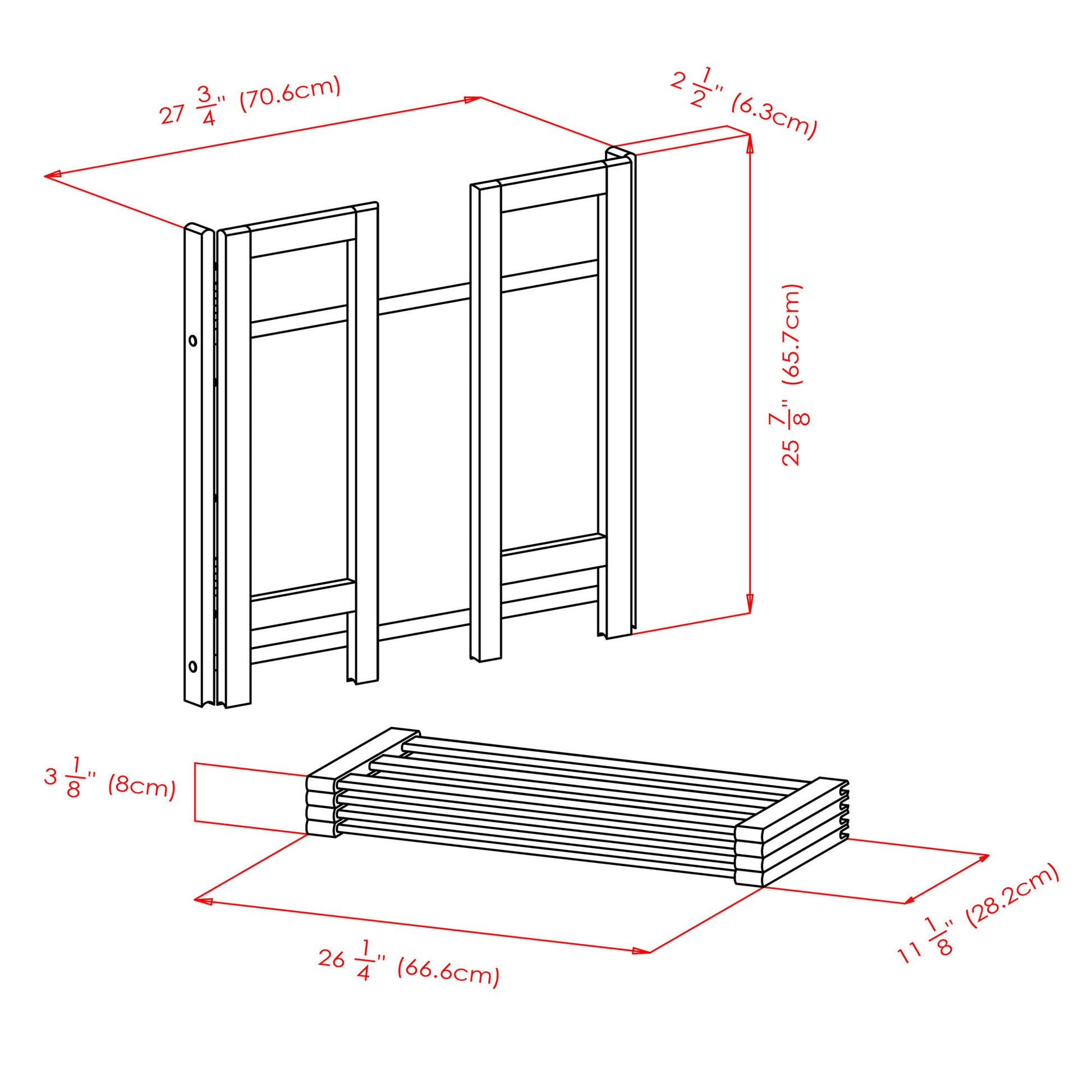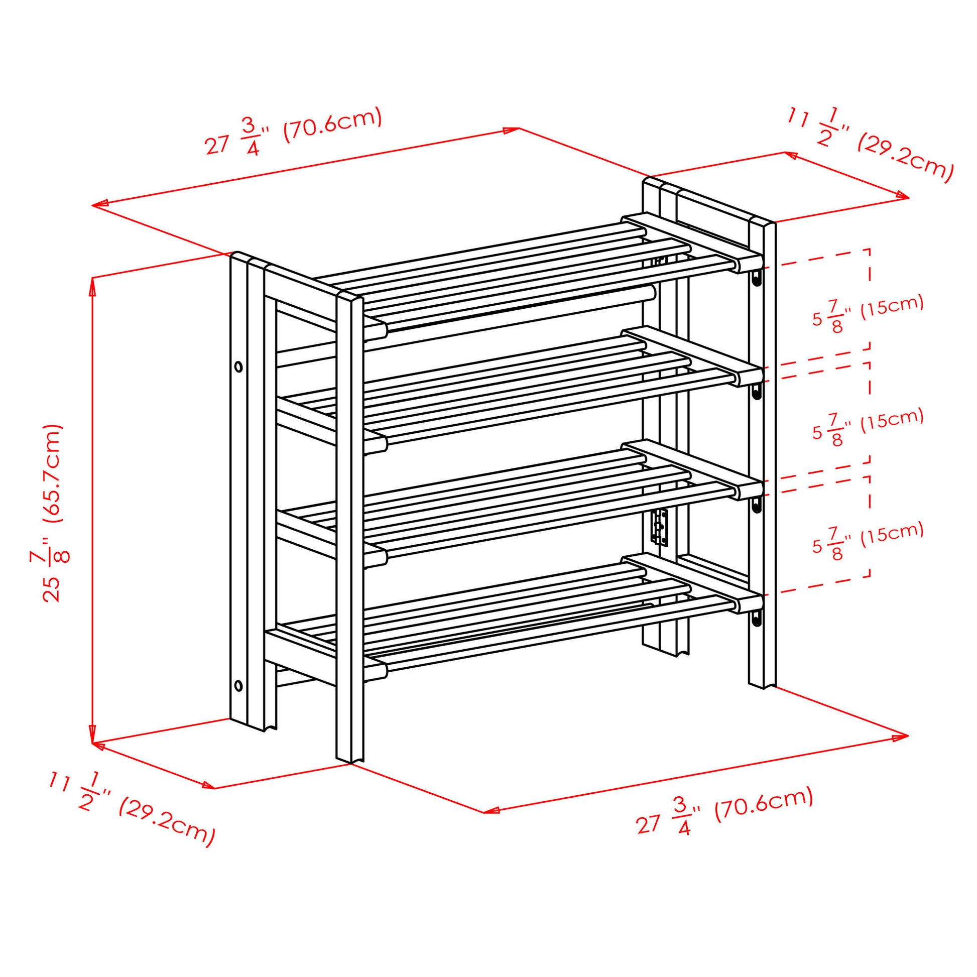 - Overall shoe rack size is 27.8"W x 11.5"D x 25.9"H. Max stacked 2 units.