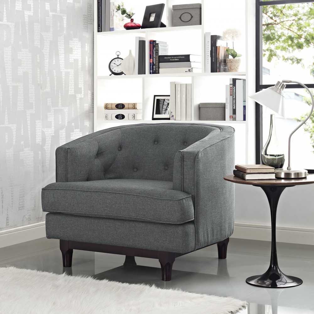 Sale the tide of elegance with Coast. Buoyed with exquisite deep button tufting and fine trim, Coast comes upholstered in polyester with a walnut stained wood leg base with non-marking foot glides. Solidly made with exceptional support, Coast features dense foam cushioning, removable seat covers for easy cleaning and generous seating space. Combining mid-century style with ageless nobility, the Coast armchair is perfect for modern and eclectic living rooms, lounge spaces, and reception areas.