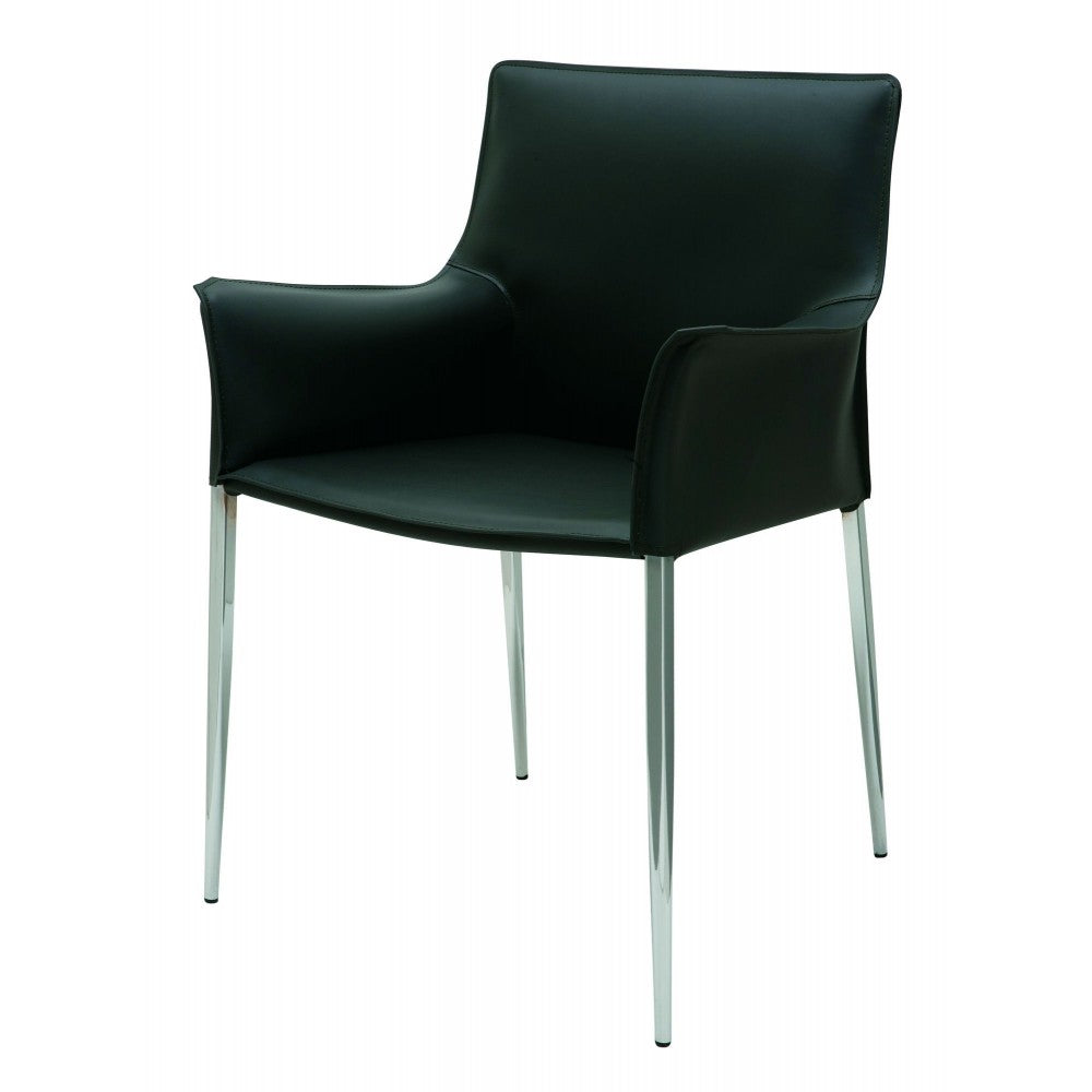 The Colter dining arm chair is understated Italian contemporary design at its best. A beautifully crafted leather tone-on-tone stitch upholstery seat is paired with a high polished stainless steel frame for a chic, refined look appropriate for any elegant space.