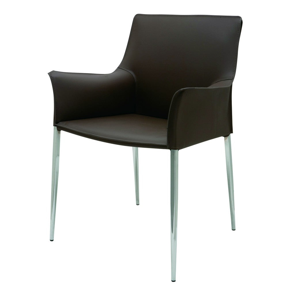 The Colter dining arm chair is understated Italian contemporary design at its best. A beautifully crafted leather tone-on-tone stitch upholstery seat is paired with a high polished stainless steel frame for a chic, refined look appropriate for any elegant space.